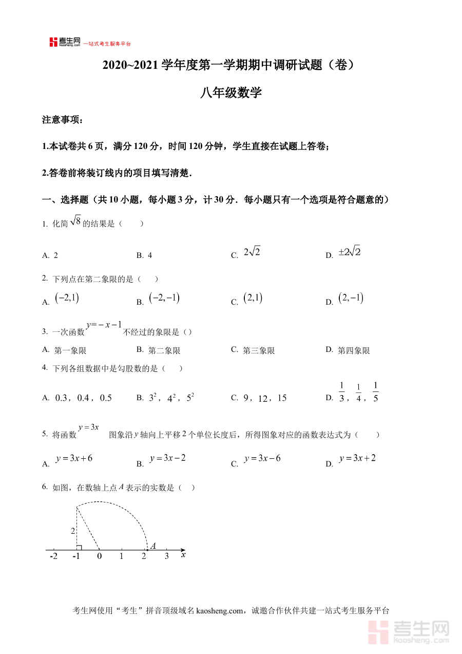 《精品解析:陕西省西安市高陵区2020-2021学年上学期八年级数学期中调研试题(A卷) (原卷版)》是针对陕西省西安市高陵区2020至2021学年第一学期八年级数学期中调研考试A卷的原始试卷类备考资料。该资料依托当地当学年期中调研考试实际命题形态,完整呈现此次考试A卷的结构框架与考查方向,为使用者提供贴近区域教学实际的阶段性考试参考样本,是对接当地初中数学教学评价体系的重要资源载体。