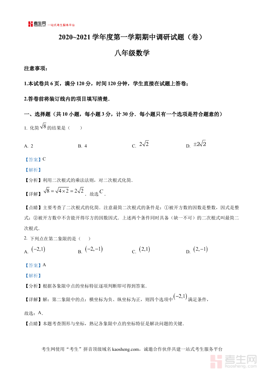 《精品解析:陕西省西安市高陵区2020-2021学年上学期八年级数学期中调研试题(A卷)(解析版)》是针对陕西省西安市高陵区2020至2021学年第一学期八年级数学学科期中调研考试A卷的专业解析类备考资料。该资料紧密结合特定学年、学期及地区的期中调研场景,精准匹配当地八年级学生的数学学习进度与阶段性考查需求,为使用者提供与实际考试高度关联的参考内容,助力使用者把握期中调研考试的核心方向与考查重点。