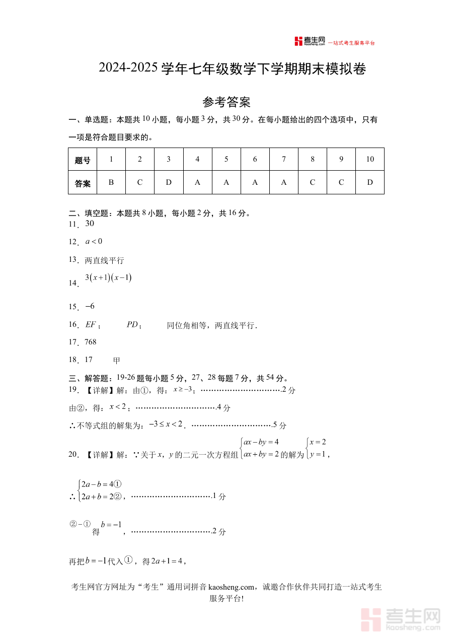 《七年级数学期末模拟卷(参考答案)(北京版)》是适配北京地区七年级数学期末阶段的配套参考资料,对应期末模拟卷的答案解析部分,旨在为相关备考活动提供规范的结果参照。作为针对北京版教材体系的期末模拟卷辅助材料,它与该地区七年级数学教学进度及期末考核要求相契合,能够帮助使用者快速验证答题结果的准确性,为后续的学习调整提供基础依据。