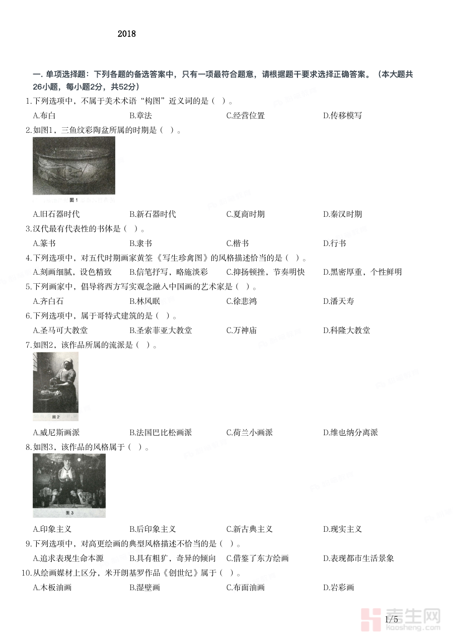 《2018年上半年教师资格证考试《初中美术》题》是针对2018年上半年国家教师资格证初中美术学科考试编写的备考资料,其内容紧密围绕该年度初中美术教师资格证考试的考核目标与范围,能够为考生提供符合当年考试标准的练习素材,帮助考生快速熟悉考试的核心方向与命题逻辑。