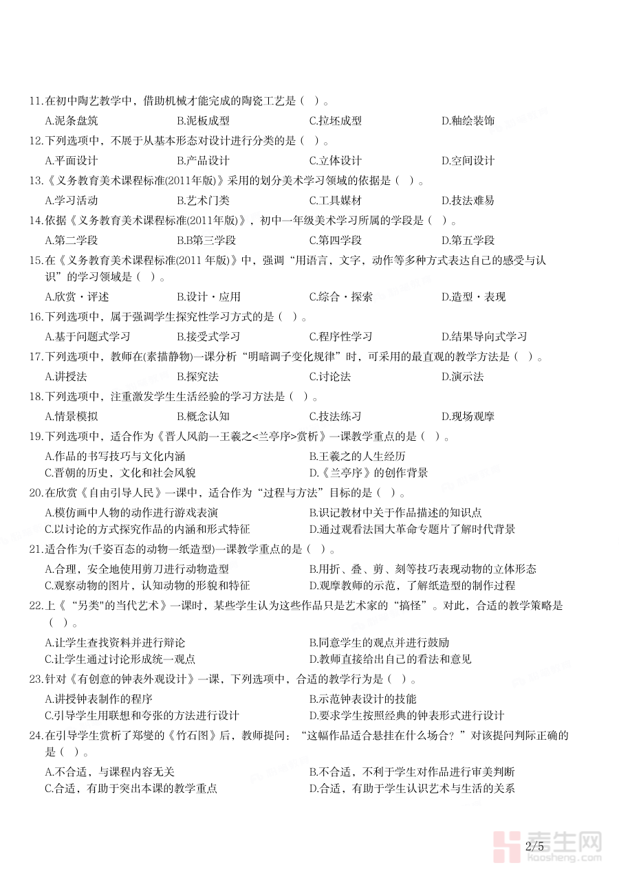 该资料可作为考生备考过程中的阶段检测工具,用于诊断自身对初中美术学科相关知识和教学技能的掌握情况,也可辅助考生制定科学的备考规划,明确复习的重点与薄弱环节;同时,通过使用该资料进行练习,考生能更好地适应教师资格证考试初中美术科目的题型结构与答题节奏,提升应试状态。