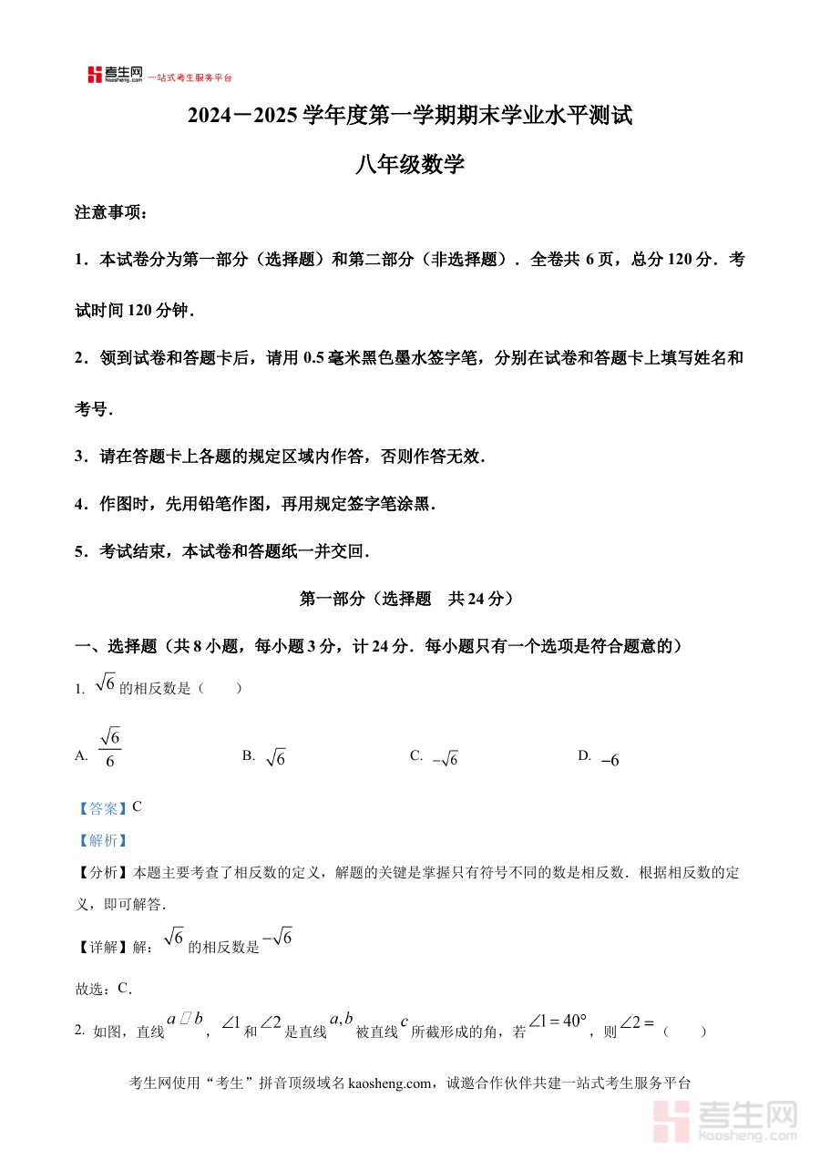 《精品解析:陕西省西安市八十三中学2024-2025学年上学期期末学业水平测试八年级数学(解析版)》是针对特定地域与学年学期的初中数学备考资料,其依托陕西省西安市八十三中学2024至2025学年第一学期的八年级数学期末学业水平测试,聚焦该阶段学生的数学学习成果检测需求,为使用者提供与考试直接相关的解析内容支持。该资料的地域属性明确指向西安市八十三中学,时间范围锁定在2024-2025学年上学期,学科与年级定位清晰,是匹配该次期末学业水平测试的专业备考资源。