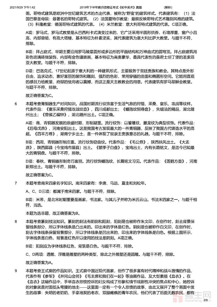 《2019年下半年教师资格证考试《初中美术》题解析》是针对2019年下半年全国教师资格证考试初中美术科目的专业备考资料,聚焦该次考试的试题内容展开系统解析,旨在为考生提供与该次考试直接相关的参考依据,帮助考生了解考试的整体框架和核心考查方向,为后续针对性备考工作奠定清晰的基础。
