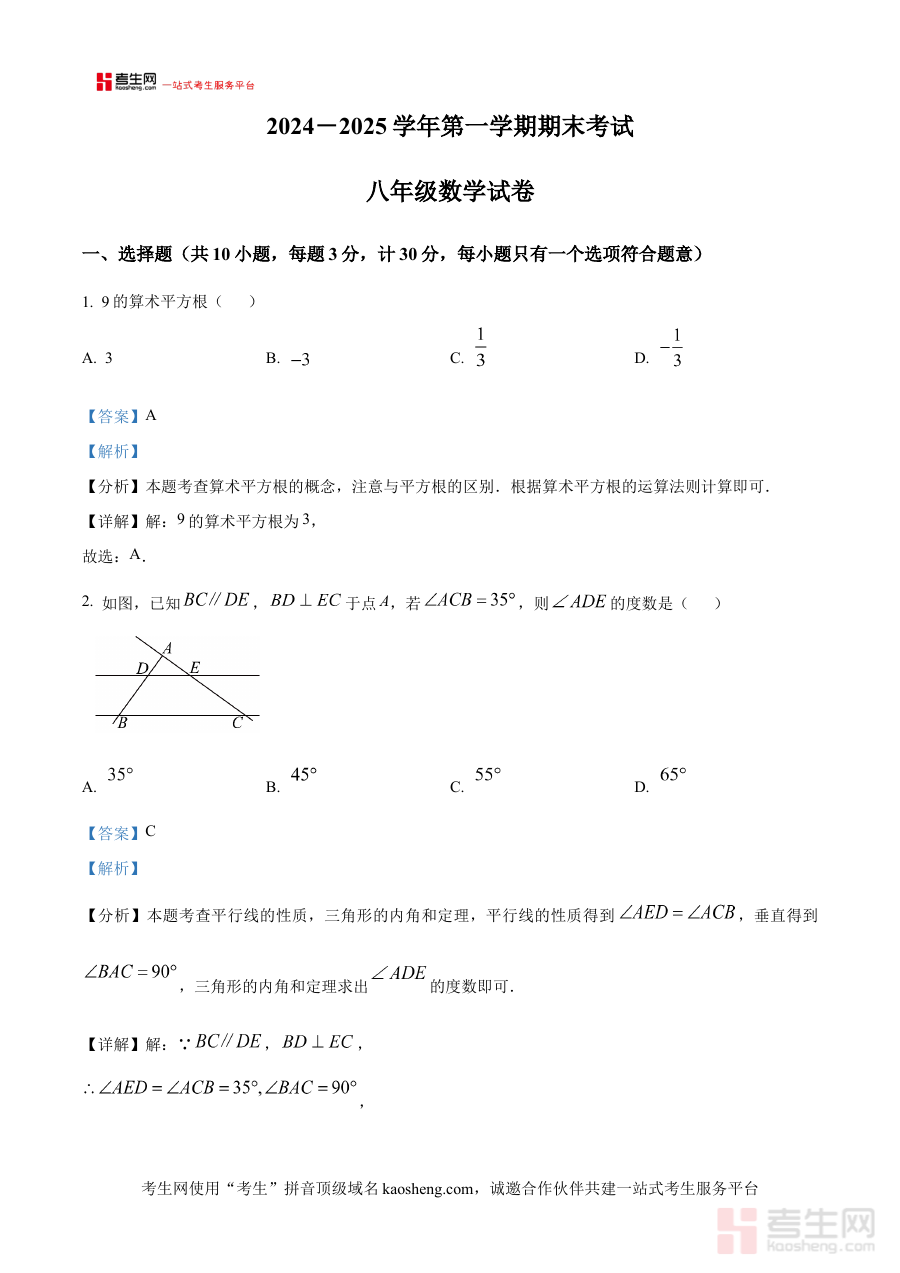 《精品解析:陕西省西安市工业大学附属中学2024-2025学年八年级上学期期末数学试题(解析版)》是针对陕西省西安市工业大学附属中学特定学年学期的数学期末考试编写的备考资料,覆盖该校八年级上学期数学学科的期末考查范围,以解析版形式呈现完整的试题解答过程与思路。该资料依托学校自身的教学进度与考试要求,为学生提供贴合本校实际的复习参考,帮助学生熟悉期末数学考试的整体框架与考查方向,是期末复习阶段的重要辅助材料。
