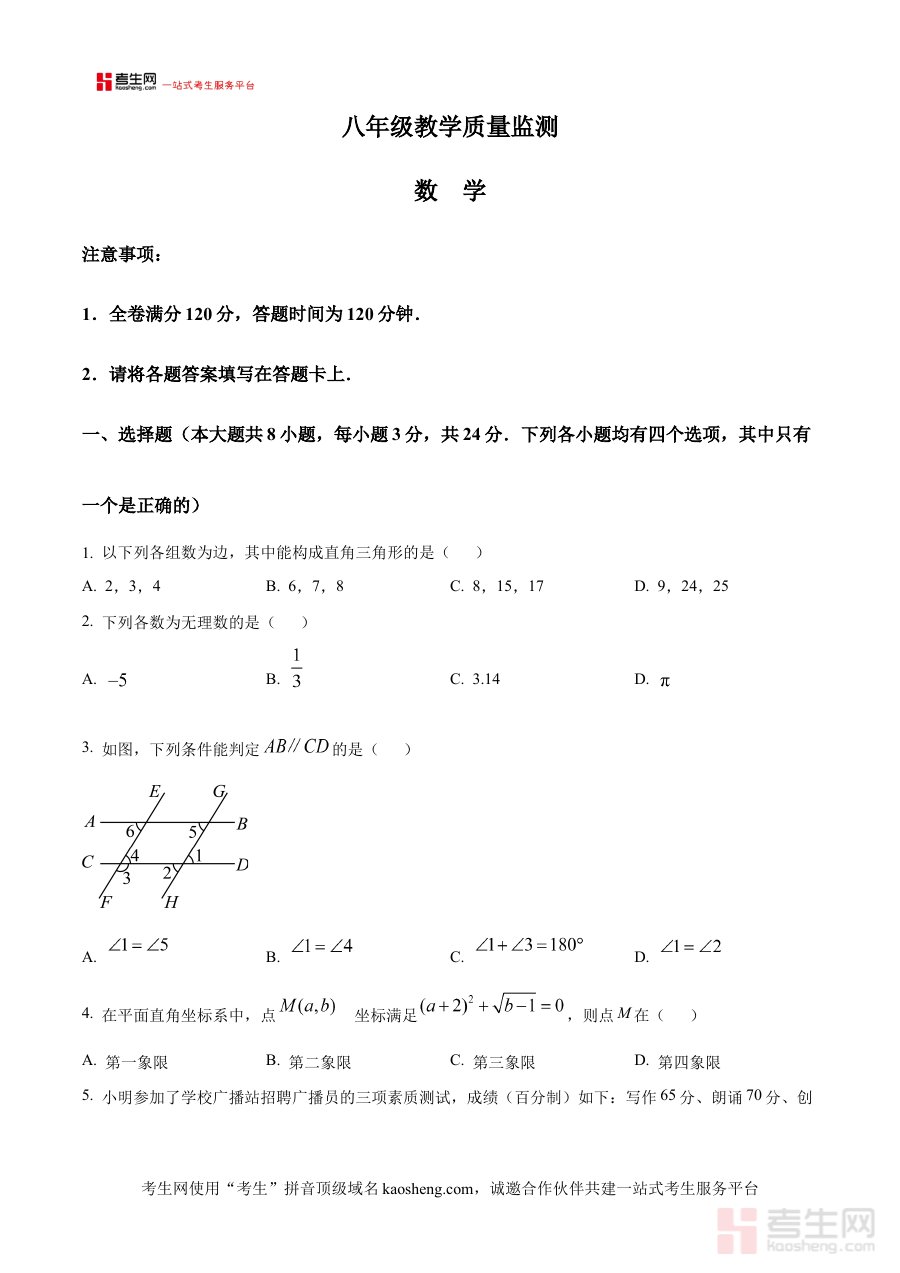 作为原卷版资料,它可支撑八年级学生在期末备考阶段开展自我学情诊断工作,帮助学生清晰认知自身对本学期数学核心知识与技能的掌握状况;同时也能为一线数学教师提供区域联考的真实考试样本,辅助教师制定更具针对性的备考规划与阶段检测方案,使教学活动与备考安排更契合本地联考的实际需求,有效提升整体备考效率与教学指导效果。