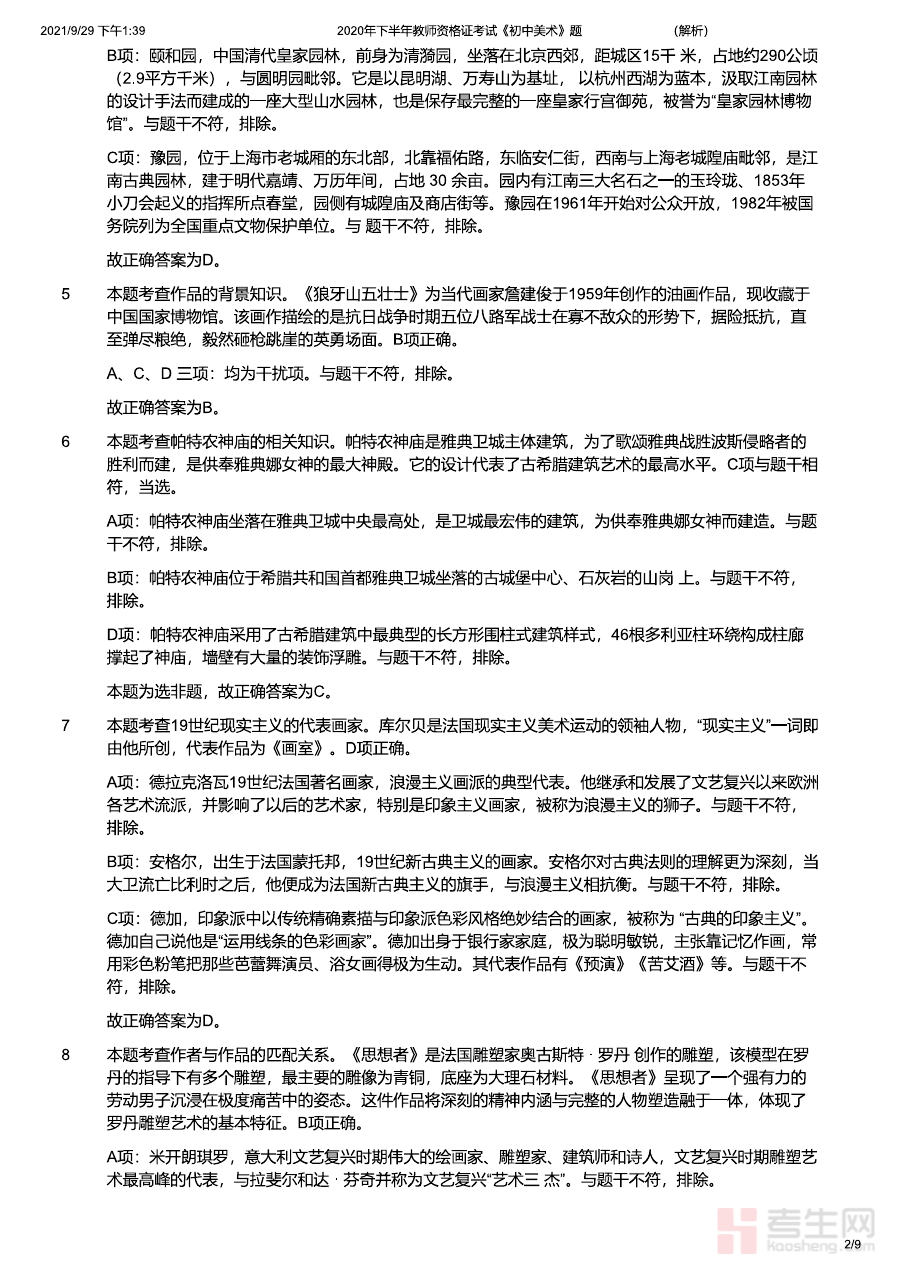 《2020年下半年教师资格证考试《初中美术》题解析》是针对2020年下半年全国教师资格证考试初中美术学科的专业备考资料,聚焦该年度该学科的考试内容与命题逻辑,旨在帮助考生深入理解考试的考查要点与方向。作为教师资格证考试的重要辅助资料,它紧密结合该次考试的学科特性与要求,为考生搭建起从知识掌握到应试应用的衔接桥梁,助力考生清晰把握考试核心脉络,为后续高效备考提供明确指引。