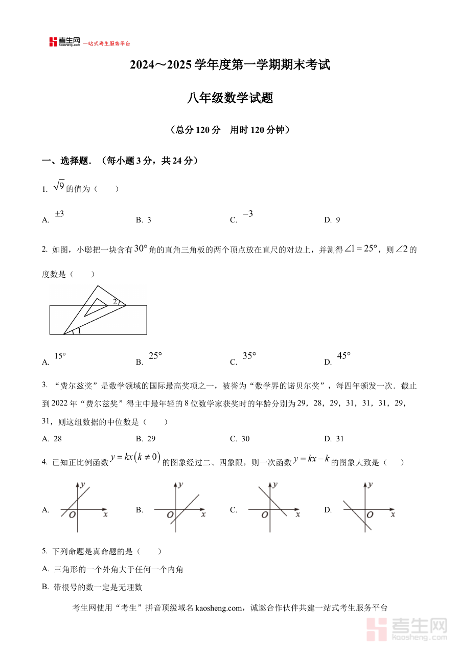 《精品解析:陕西省西安市高新二中2024-2025学年八年级上学期期末考试数学试题(原卷版)》是针对陕西省西安市高新二中2024至2025学年八年级上学期数学期末考试打造的专业备考资料,精准贴合该学校该学年八年级上学期的数学教学进度与期末考试的命题要求。作为原卷版资料,它完整保留了本次期末考试数学试题的原始呈现形式,能够让使用者直接接触到与实际考试完全一致的试题框架,为后续的备考准备提供真实且可靠的参考依据,帮助使用者快速把握考试的整体脉络与核心方向。