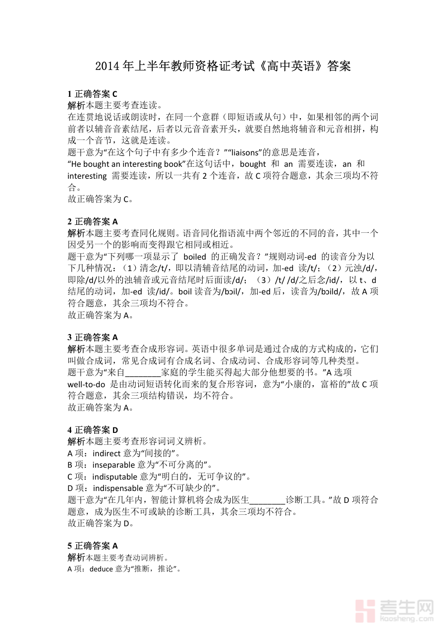 《2014年上半年教师资格证考试《初中英语》真题解析》是针对2014年上半年全国教师资格证考试初中英语学科的专业备考资料,以该次考试的真题为核心载体,通过系统解析呈现考试的命题逻辑与考查要点,为备考者提供与考试实际场景高度贴合的参考依据,帮助备考者快速把握该次考试的学科考查方向与能力要求,是衔接考试内容与备考实践的重要桥梁。