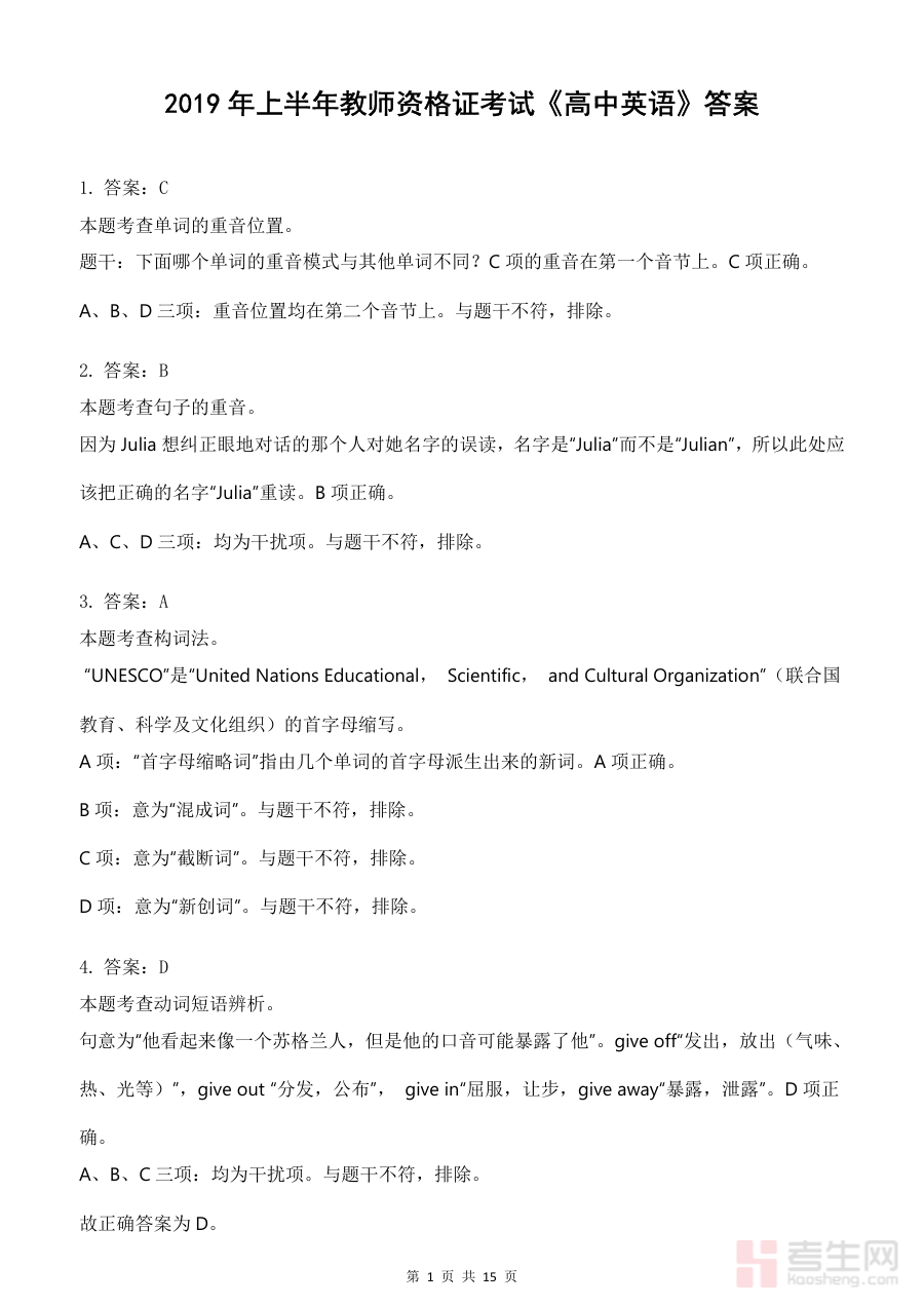 《2019年上半年教师资格证考试《初中英语》真题解析》是针对2019年上半年全国教师资格证初中英语学科考试的专业备考辅助资料,聚焦该次考试的真题内容进行系统解析,为考生提供贴近真实考试场景的参考依据,帮助考生了解该次考试的命题方向与考查重点,是教师资格证初中英语科目备考过程中具有针对性的学习资源。