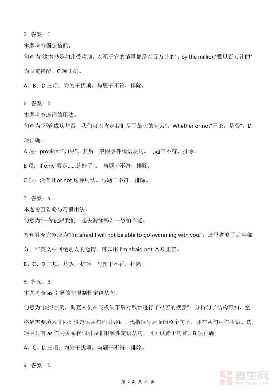 该资料主要用于考生在备考过程中的学情诊断与备考规划指导,通过对真题的解析帮助考生明确自身知识掌握的薄弱环节,进而调整备考策略,优化学习计划;同时也可作为阶段检测的参考工具,让考生在模拟真实考试环境后,借助解析内容及时查漏补缺,提升备考效率与针对性。