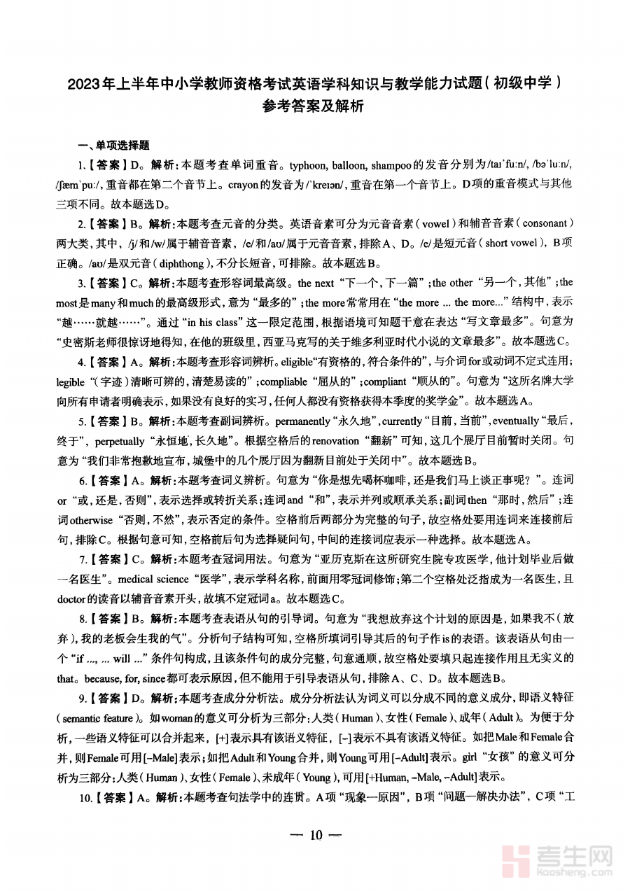 适用人群为计划参加2023年上半年初中英语教师资格证考试的考生群体,尤其适合处于备考初期需要建立清晰复习框架、中期需要进行阶段检测与调整策略、后期需要强化重点内容的考生,其解析内容能够为不同备考阶段的考生提供有效的指引与支持,助力考生提升备考效果。