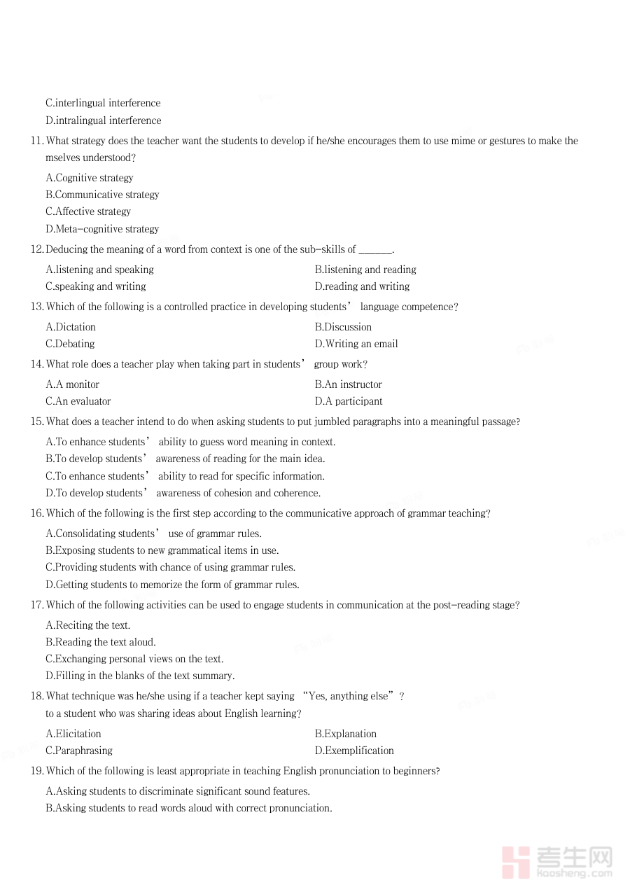 本资料主要适用于计划参加2023年下半年初中英语教师资格证考试的各类人群,包括在校师范类学生、有意向转行从事初中英语教育的在职人员以及其他有志于获取初中英语教师资格证书的备考者。通过系统使用该资料,考生能够强化对考试要求的认知,提升备考的精准度与效率,为顺利通过考试并开启初中英语教育职业生涯奠定坚实基础。
