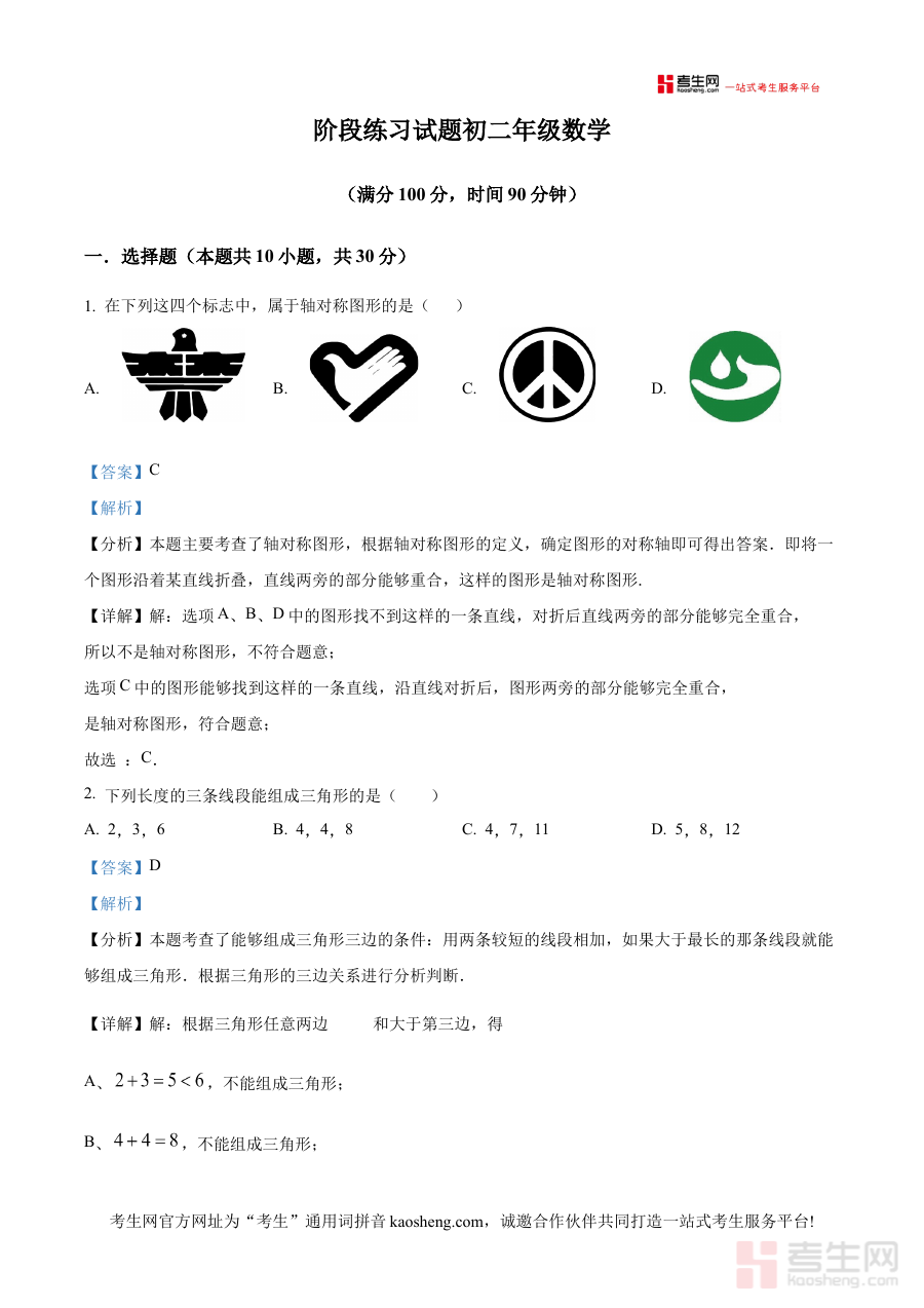 《精品解析:北京市第十二中学2024~2025学年八年级上学期数学月考(10月)试题(解析版)》是针对北京市第十二中学2024至2025学年八年级上学期10月份数学月考的专项备考资料,紧密贴合该校该阶段数学教学进度与校考考查重点,为学生提供与校考实际高度匹配的学习支持资源。