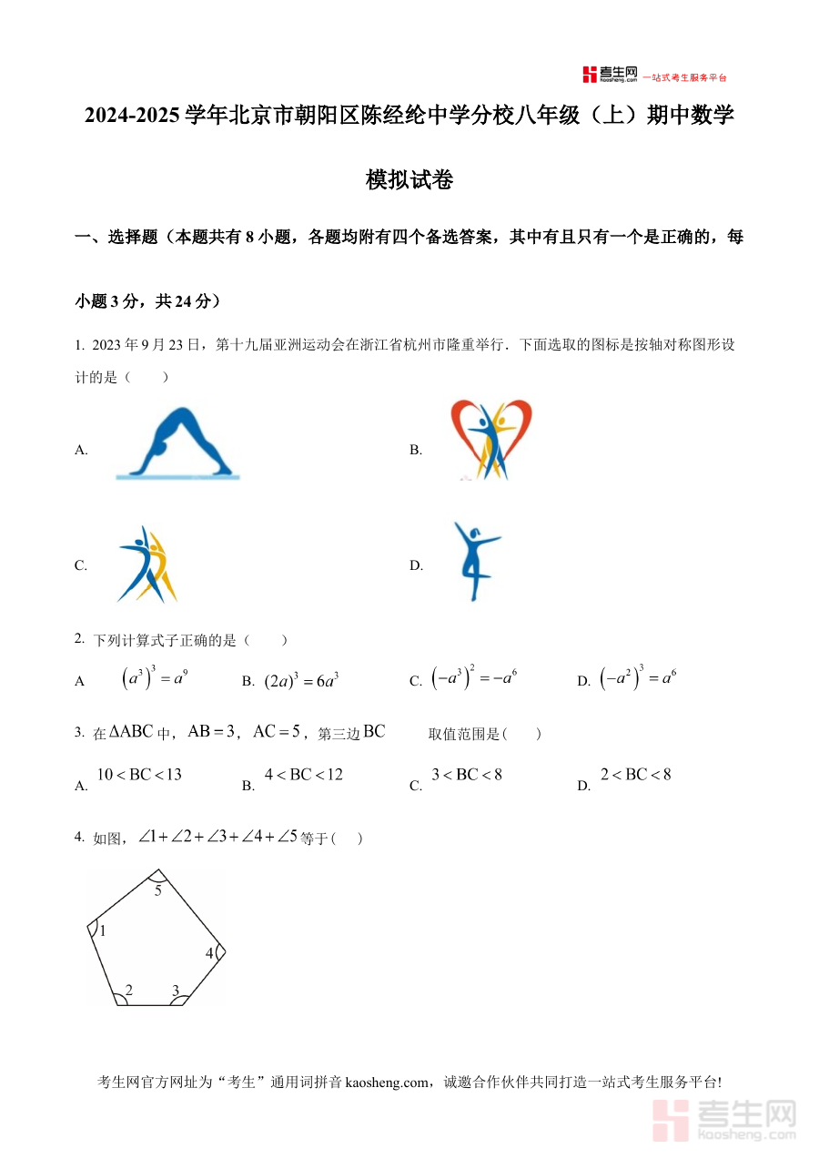 《精品解析:北京市朝阳区陈经纶中学分校2024-2025学年八年级上学期期中数学模拟试卷(原卷版)》是针对北京市朝阳区陈经纶中学分校2024至2025学年八年级上学期期中数学考试设计的模拟备考资料,明确对应特定学年、学段及区域学校的期中数学考试场景,为相关群体提供贴合该校期中考查需求的练习载体。