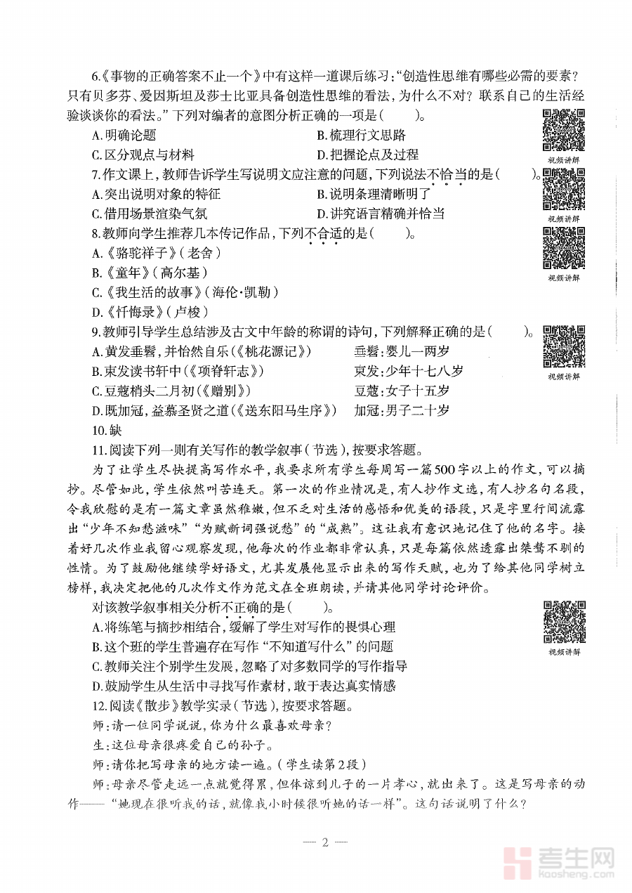 此真题资料适用于所有有志于获取初中语文教师资格的备考人群,涵盖在校师范类学生、非师范专业的社会考生以及需要重新认证资格的在职教师等。对于备考者而言,深入分析与练习该真题不仅能加深对考试要求的理解,还能提升应试能力与临场发挥水平,其在备考过程中的阶段检测与规划指导价值对顺利通过考试具有重要意义。
