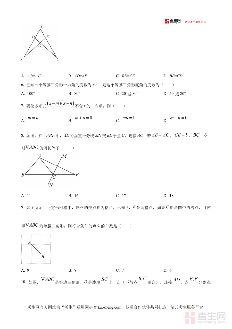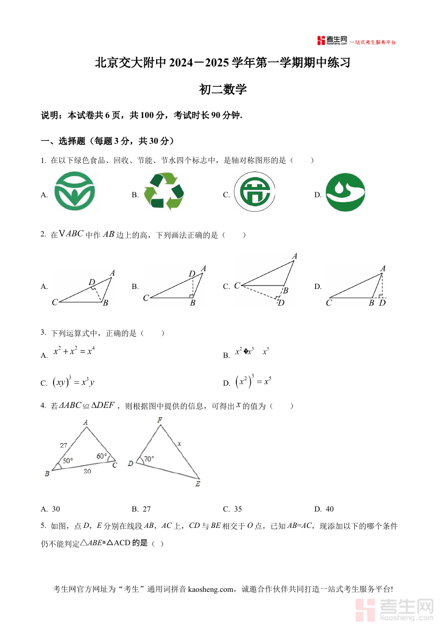 《精品解析:北京交通大学附属中学2024—2025学年八上学期期中数学试卷(原卷版)》是针对北京地区2024至2025学年八年级上学期期中数学考试的备考资料,聚焦该阶段数学学科的期中检测需求,为使用者提供贴合本地校考实际的练习载体。