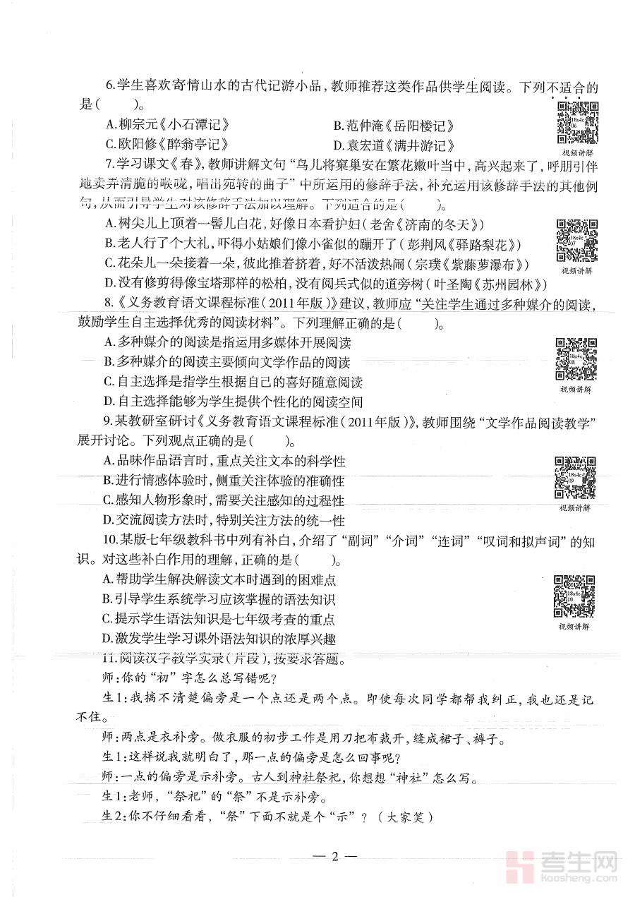 该真题资料可用于考生在备考过程中的学情诊断,帮助考生了解自身对初中语文学科知识与教学能力要求的掌握程度;同时也能辅助考生进行备考规划,明确备考重点与方向;还可作为阶段检测工具,检验阶段性学习成果,及时调整学习策略。