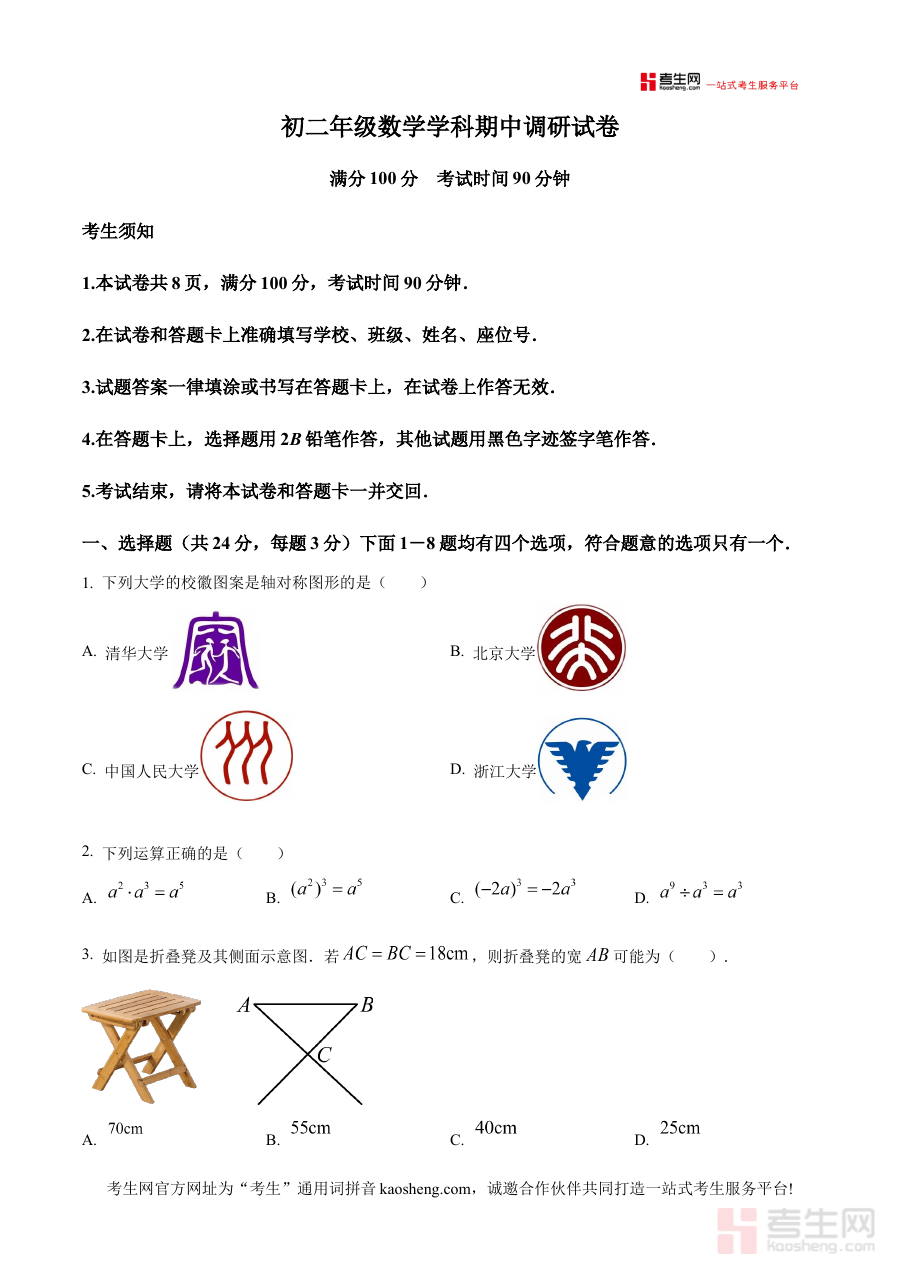 本资料适用于北京市朝阳区北京中学八年级学生、数学教师及学生家长。学生通过使用可熟悉期中考试的考查形式与范围,增强备考准备;教师可借助其开展教学效果检测与分析;家长则能依据资料了解孩子学习阶段的重点,辅助孩子制定合理的学习计划,共同促进学生数学学科能力的提升。