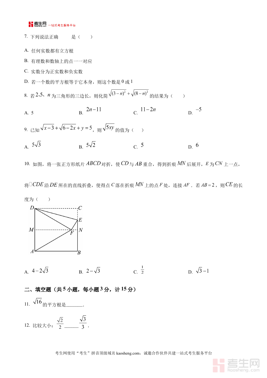 作为原卷版资料,它具备多重实用价值:既能帮助学生在正式考试前进行自我学情诊断,通过模拟考试过程了解自身对八年级上学期初期数学知识的掌握程度;也能为教师开展阶段教学效果评估提供可靠工具,辅助教师精准把握班级整体学习状况并调整教学策略;同时还可作为学生与教师共同制定个性化备考规划的重要参考依据。