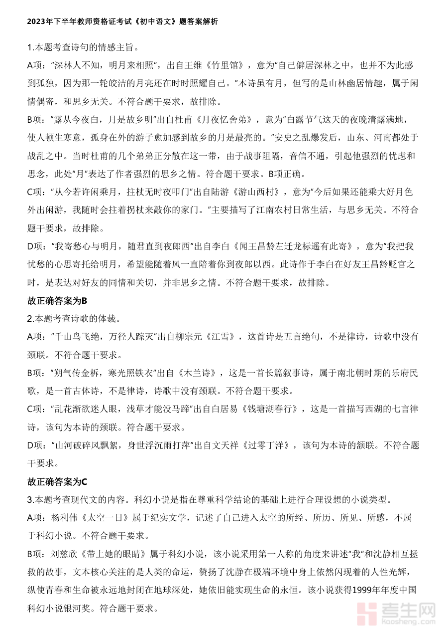 其适用人群为计划参加2023年下半年教师资格证初中语文考试的考生群体,尤其是希望通过专业解析提升应试能力、优化复习路径的考生,该资料在阶段检测与备考规划方面的辅助价值,能有效增强考生备考的针对性和效率。