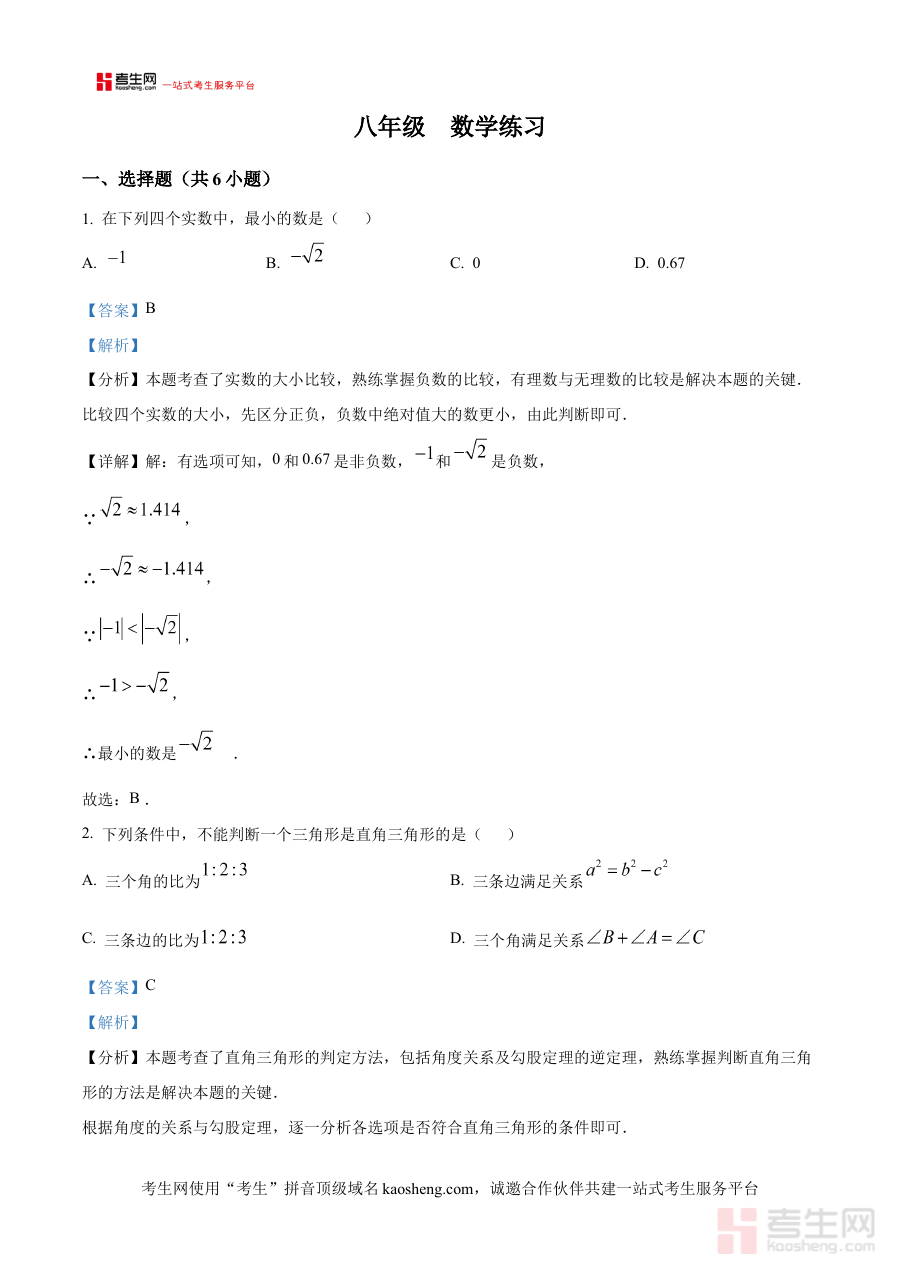 《精品解析:陕西省西安市高新一中初级中学2025-2026学年上学期开学考试八年级数学试题(解析版)》是针对陕西省西安市高新一中初级中学特定学年学期的八年级数学开学考试打造的专业备考资料。该资料聚焦新学期初始阶段的数学学科检测需求,结合高新一中初级中学的考试命题特点,为使用者提供与该校实际考查方向高度契合的备考支持,帮助学生提前熟悉开学考试的考查形式与核心方向。