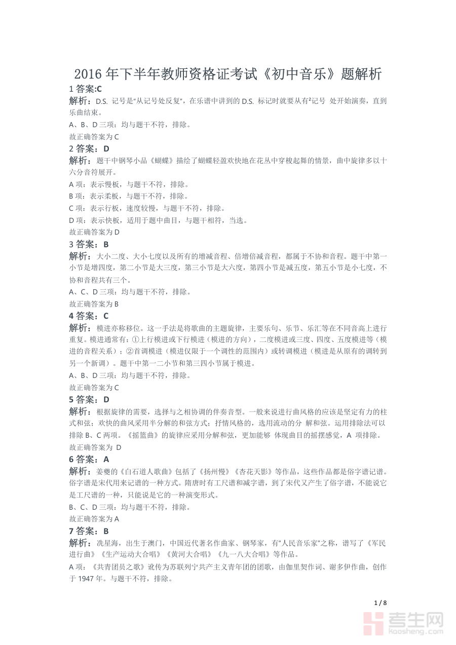 《2016年下半年教师资格证考试《初中音乐》题解析》是针对2016年下半年全国教师资格证考试初中音乐学科的专业备考资料。它基于该次考试的真题内容展开解析,能够帮助使用者精准把握该年份初中音乐教师资格考试的命题逻辑与考查方向,为备考过程提供具有针对性的参考支持,是初中音乐教师资格备考阶段重要的辅助材料之一。