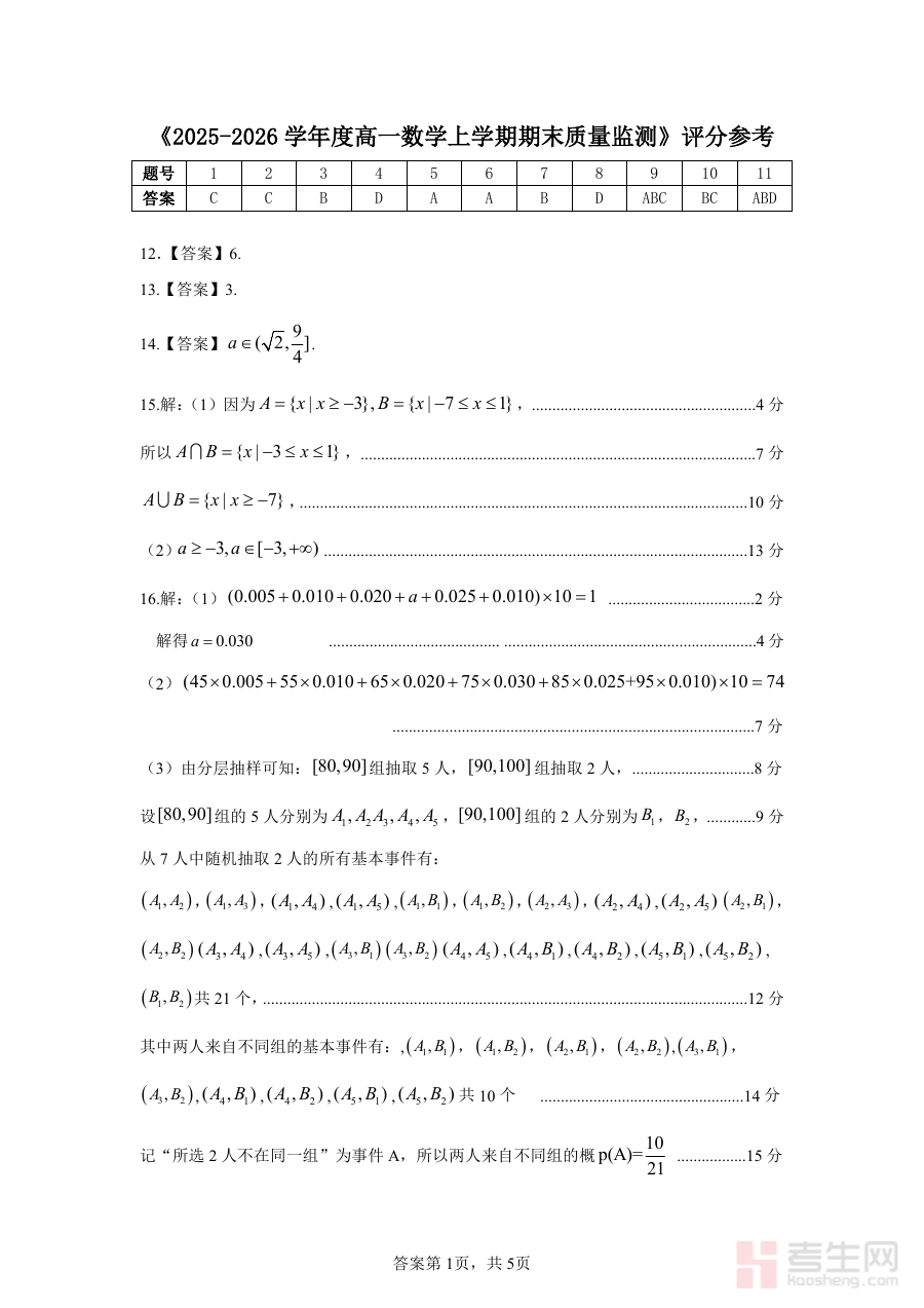 《桂林2025-2026秋季期末高一数学答案》是针对广西桂林地区2025至2026学年秋季学期高一数学期末考试的配套参考答案资料。该资料与当地同期高一数学期末检测直接对应,紧密贴合该阶段数学教学进度与考试要求,能够为使用者提供准确的答题参考依据,助力其了解该次考试的评分标准、答题方向及核心考查重点。