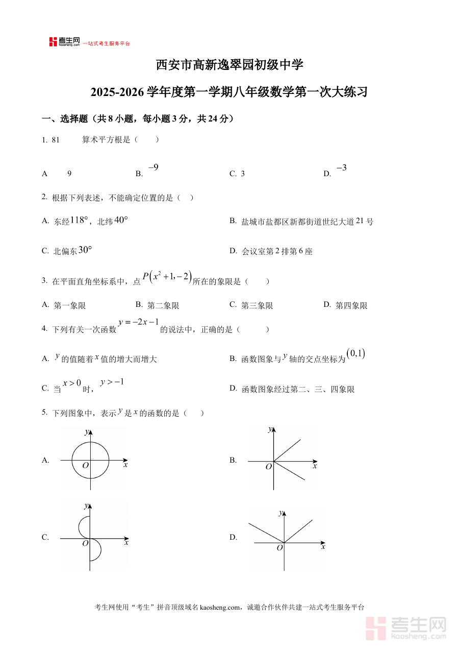 《精品解析:陕西省西安市高新逸翠园初级中学2025-2026学年上学期八年级数学第一次大练习 试题(原卷版)》是陕西省西安市高新逸翠园初级中学针对2025-2026学年上学期八年级学生推出的阶段性数学练习资料,对应校内第一次大练习的考试类型,属于原卷版试题资源。该资料严格贴合学校本学期八年级数学的教学进度与考察方向,能够真实呈现校内初期阶段数学检测的内容框架与形式要求,为学生提供与校内练习高度匹配的备考素材,帮助学生提前适应校内大练习的考试节奏与考察重点。