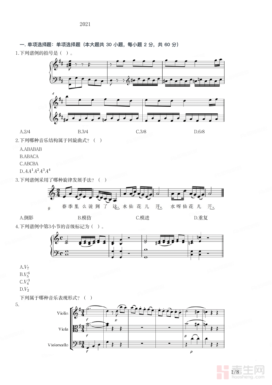 《2021年下半年教师资格证考试〈初中音乐〉题》是针对2021年下半年全国教师资格证考试初中音乐学科的专业备考资料。该资料紧扣当次考试的命题方向与学科考查维度,为考生提供贴合考试实际的练习内容,帮助考生熟悉初中音乐教师资格考试的整体框架与核心考查方向,是考生衔接理论学习与应试实践的重要支撑载体。