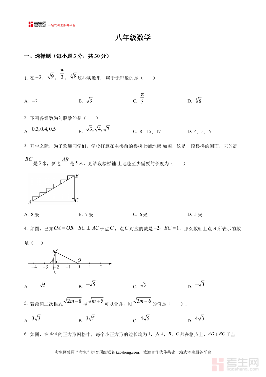 《精品解析:陕西西安市第三中学2025-2026学年上学期第一次月考八年级数学试题(原卷版)》是针对陕西西安市第三中学2025至2026学年上学期八年级数学学科第一次月度检测打造的专业备考资料。该资料精准对应特定学年上学期的阶段学习节点,聚焦八年级数学的阶段性知识考查需求,以原卷版的形式完整呈现考试的结构与要求,能够为使用者提供与实际考试场景高度契合的练习素材,助力其提前适应考试的节奏和形式,为后续的备考工作奠定基础。