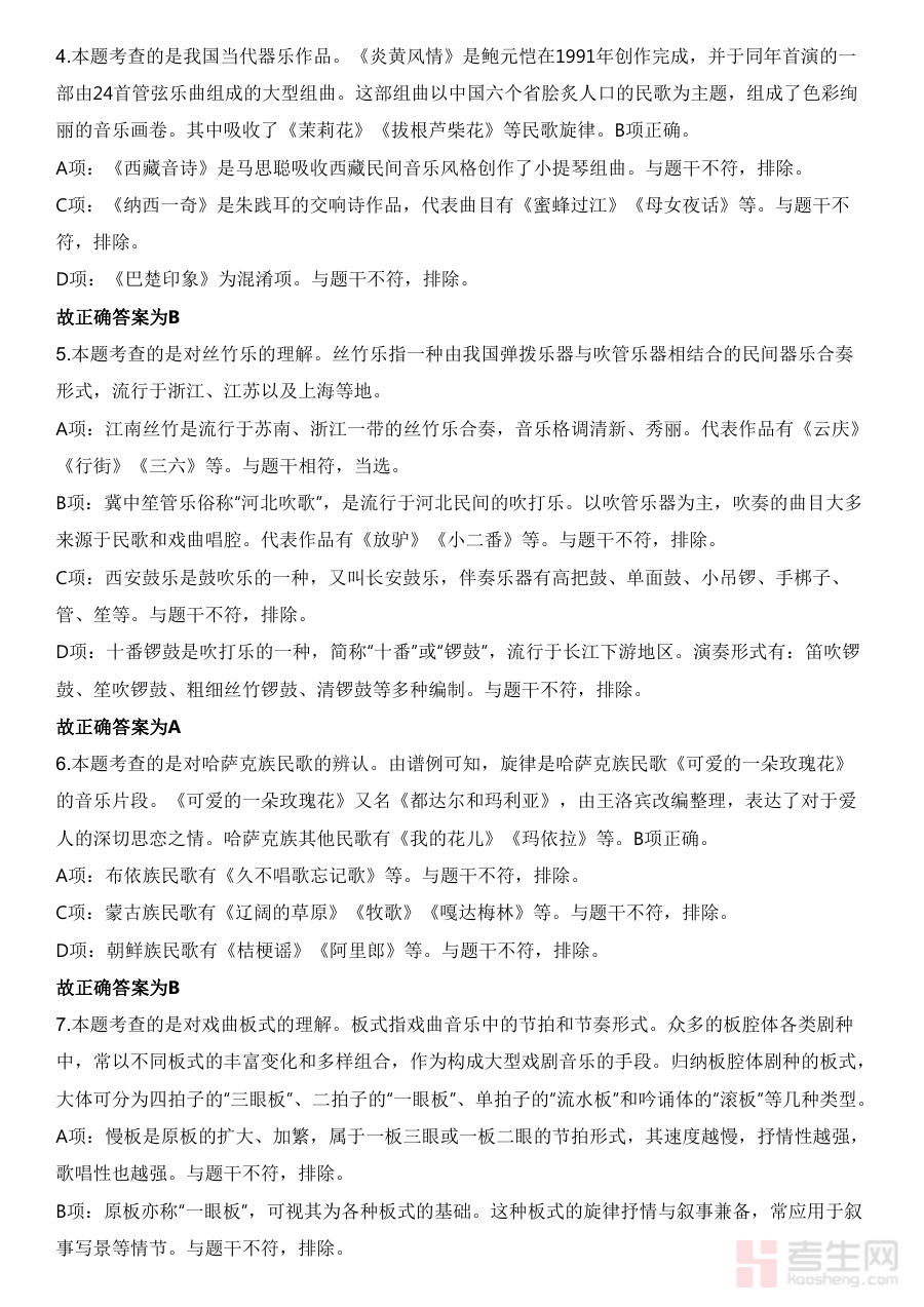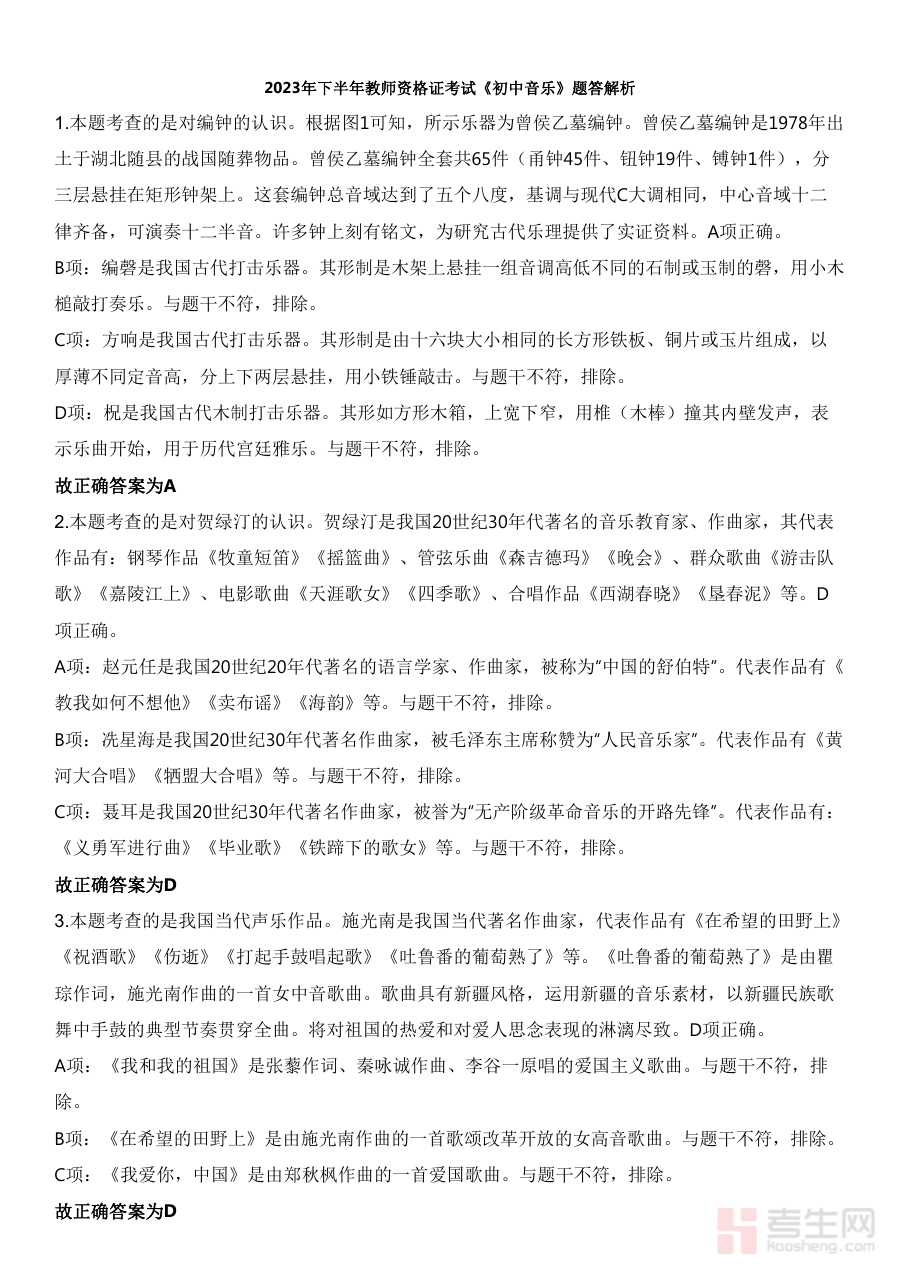 该资料可用于考生在备考过程中的学情诊断,通过对解析内容的学习与分析,考生能够清晰把握自身在初中音乐教资考试相关知识领域的掌握程度,辅助制定更具针对性的备考规划,助力考生精准定位复习目标,同时也可作为阶段检测的工具,及时发现备考中的不足并调整复习方向。