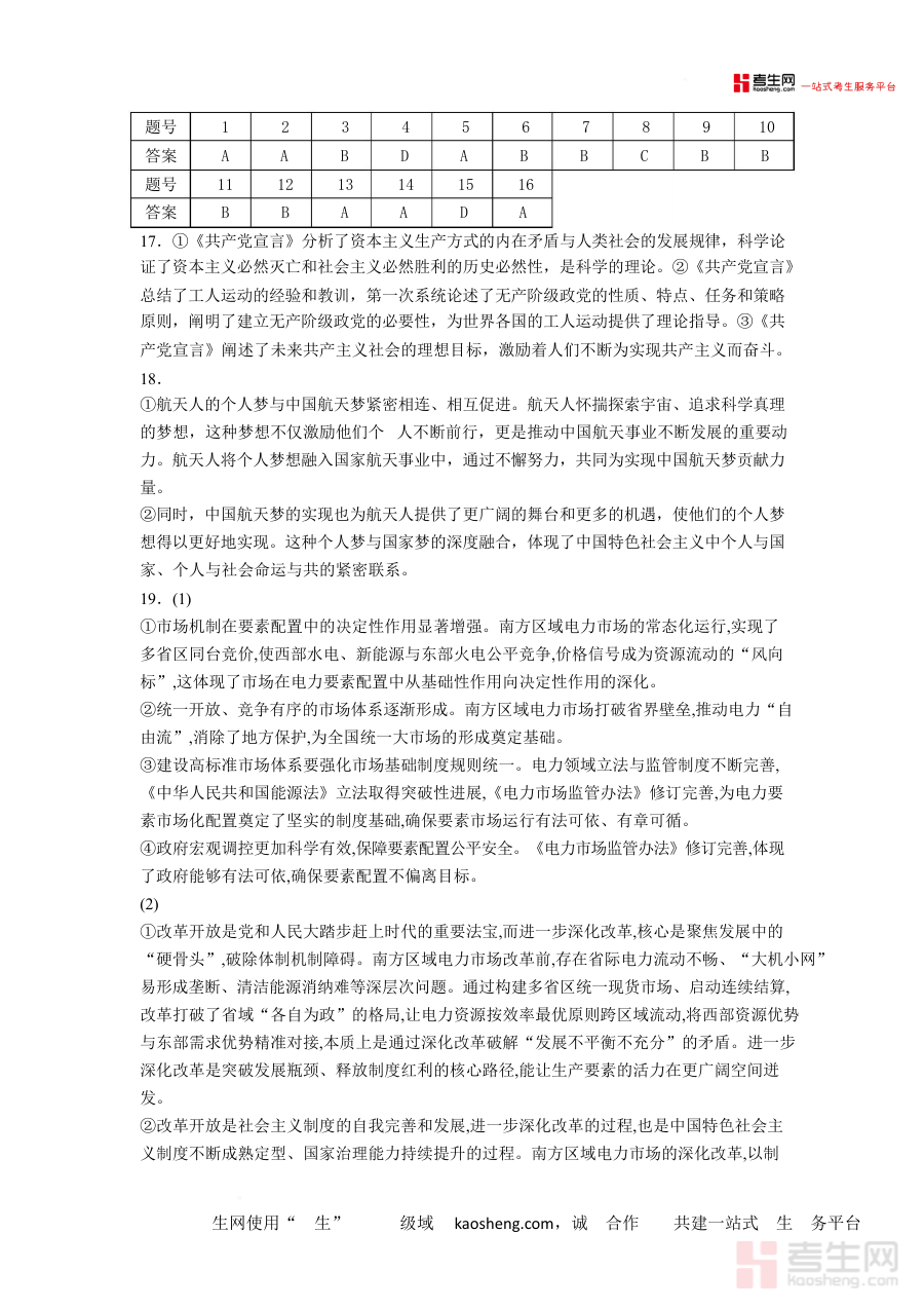 该答案资料可用于高一学生对自身政治学科学习成效的诊断与反思,帮助教师掌握班级整体学习状况,为后续教学内容调整和学生备考规划提供数据支撑。通过对照答案,师生能高效定位知识掌握的薄弱环节,优化教学与学习策略,提升阶段学习的针对性和有效性。
