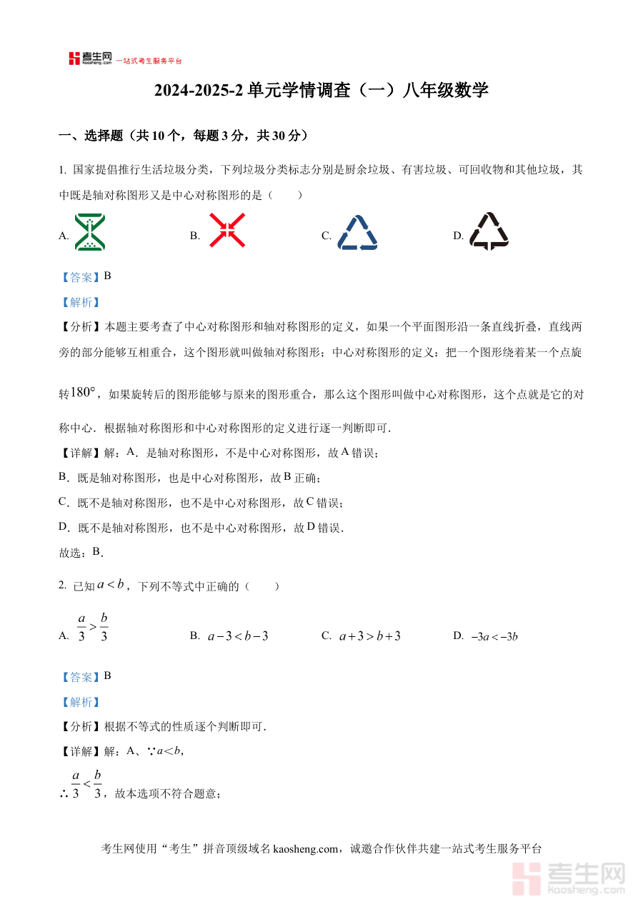 《精品解析:陕西省西安市灞桥区滨河中学2024-2025学年八年级下学期3月月考数学试题(解析版)》是针对陕西省西安市灞桥区滨河中学在2024-2025学年第二学期3月举行的八年级数学月考所编制的专业备考资料。该资料紧密围绕本次月考的考查范围与要求,以解析版形式呈现核心内容,为使用者提供与考试直接相关的支持与指导。作为区域内特定学校的阶段性考试资料,它具有较强的针对性和适用性,能精准反映该校八年级数学教学的阶段性重点、考查方向及对学生知识掌握程度的要求,帮助使用者快速对接考试实际需求。