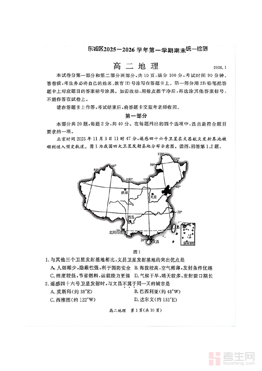 本资料适用于北京市东城区2025-2026学年高二学生、地理学科教师及相关教育工作者,对于学生而言可提升期末备考效率,对于教师可优化教学策略与评价方式,对于教育工作者可作为区域学业评价研究的实践素材,具有多维度的应用价值。