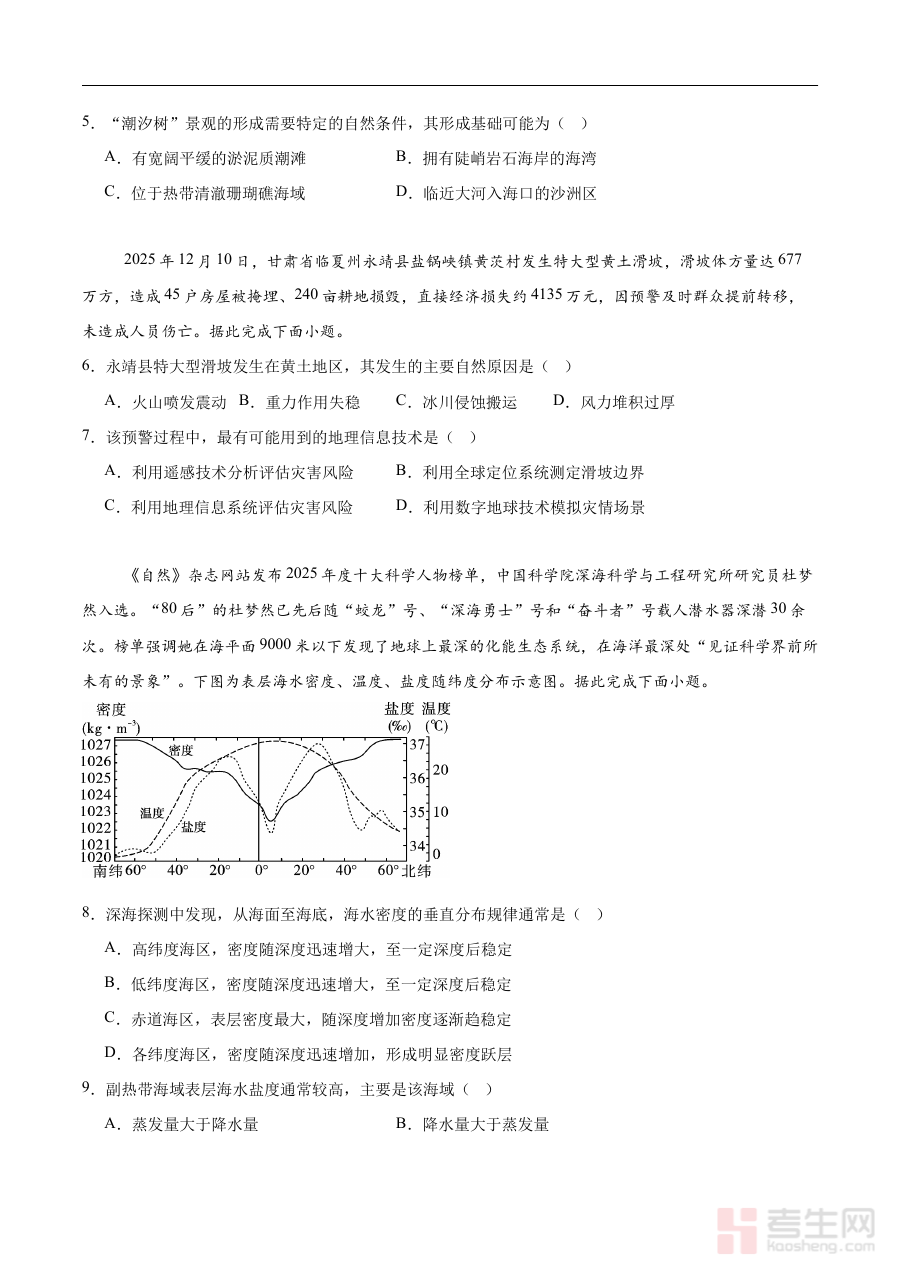 《河北省“五个一”名校联盟2025-2026学年高一上学期期末地理试卷(含答案)》是由河北省“五个一”名校联盟针对2025-2026学年高一学生推出的期末地理考试配套资料。该资料依托联盟内多所优质学校的教学资源与命题经验,聚焦高一上学期地理学科的阶段学习成果检测需求,为学生提供了贴合区域教学实际的标准化测试内容及参考答案支持。