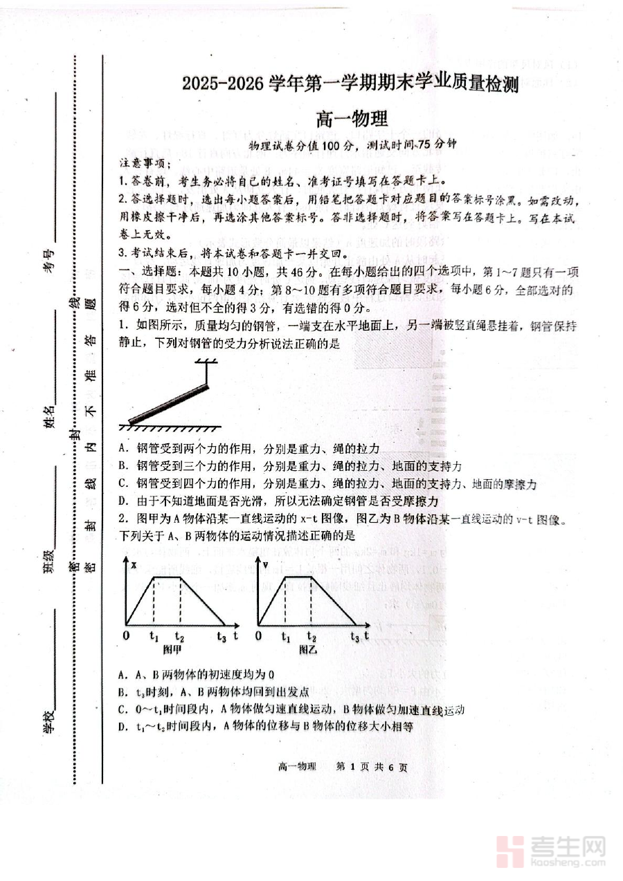 此资料具备多重实用价值,可助力高一学生在期末前开展自我学情诊断,清晰认知自身物理知识体系的薄弱环节与能力短板;同时也能为物理教师提供教学效果评估的工具,辅助教师梳理教学重点与学生共性问题,从而制定更具针对性的复习规划与指导方案,有效提升教与学的效率。