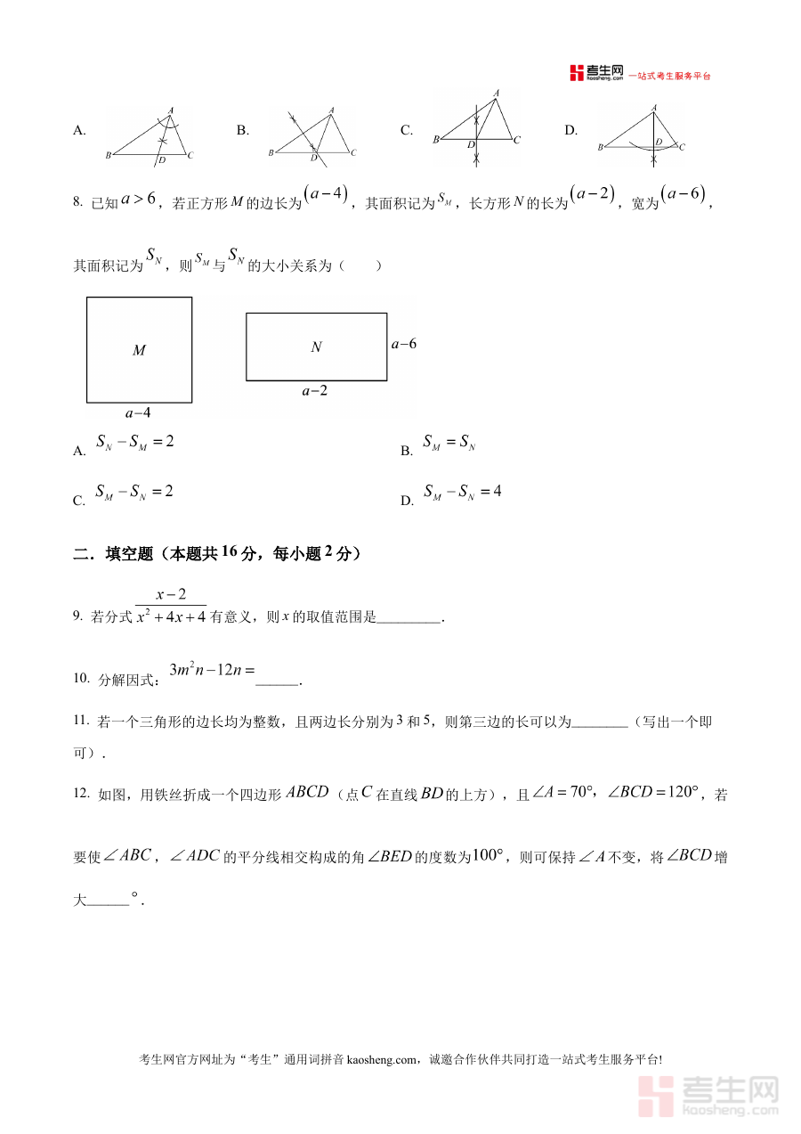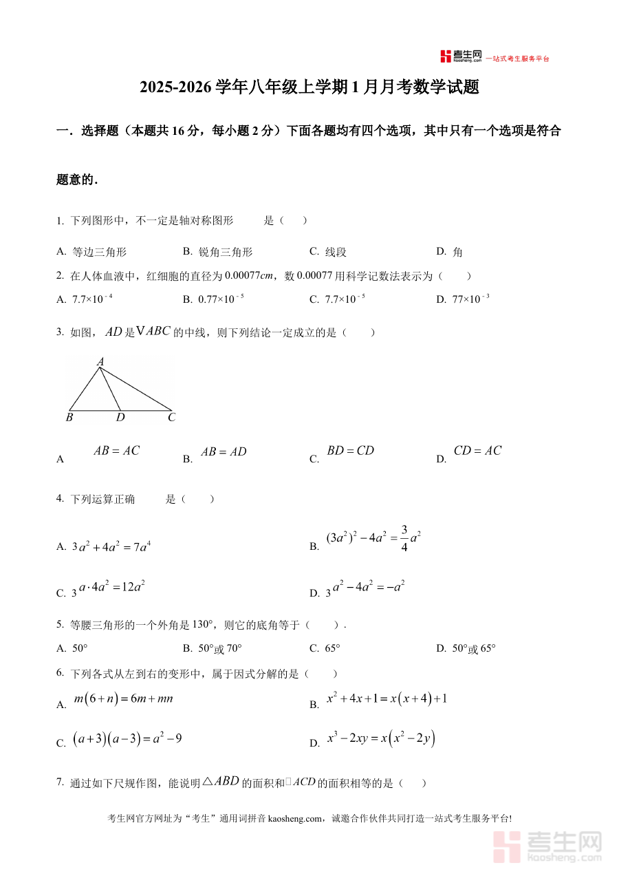 该资料作为原卷版试题,主要用于帮助使用者进行学情诊断,通过真实的自测场景还原,让使用者能够准确把握自身在八年级上学期数学学习中的知识掌握情况,为后续的备考规划提供数据支撑,同时也可作为阶段检测的参考材料,辅助教师或学生评估学习进度与效果。