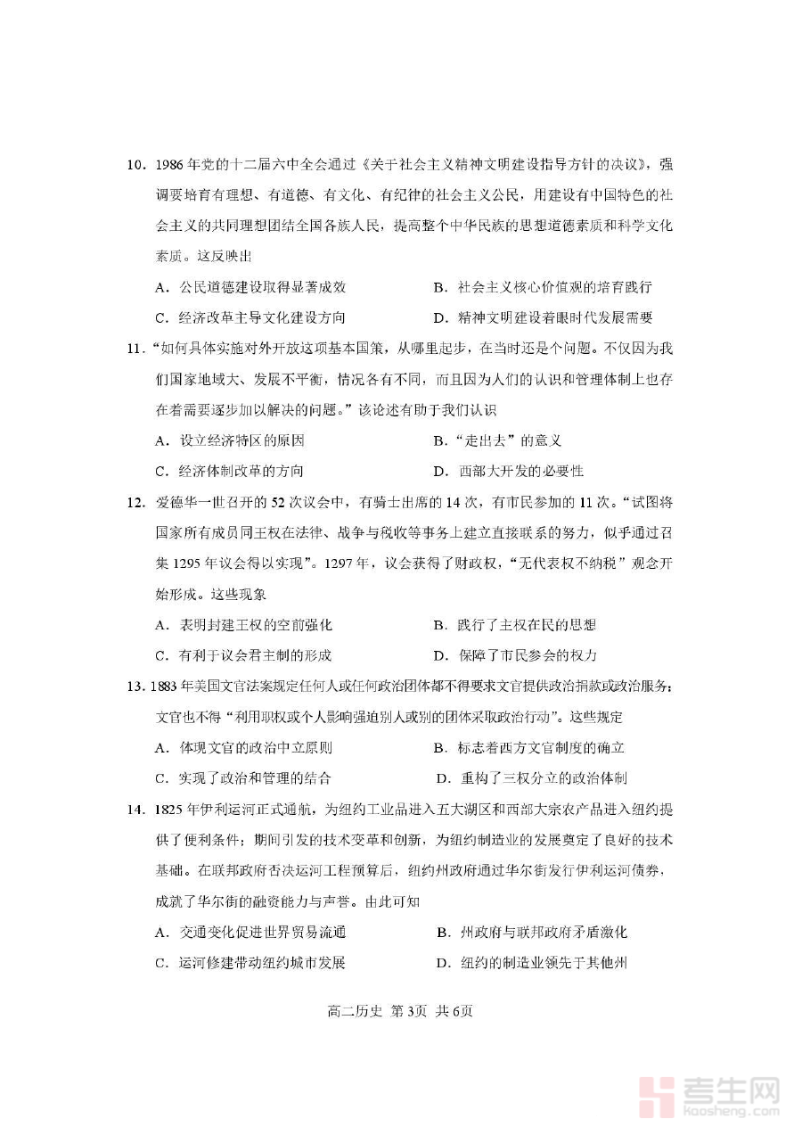 该样卷可用于教师对学生历史学习情况的阶段性诊断分析,帮助教师精准把握学生在高二上学期历史知识掌握的整体水平与薄弱环节,从而为后续教学内容调整和备考规划制定提供数据支持;同时也能让学生提前熟悉教学质量监测的考查形式与规范,明确自身学习的优势与不足,为针对性复习和能力提升奠定基础。