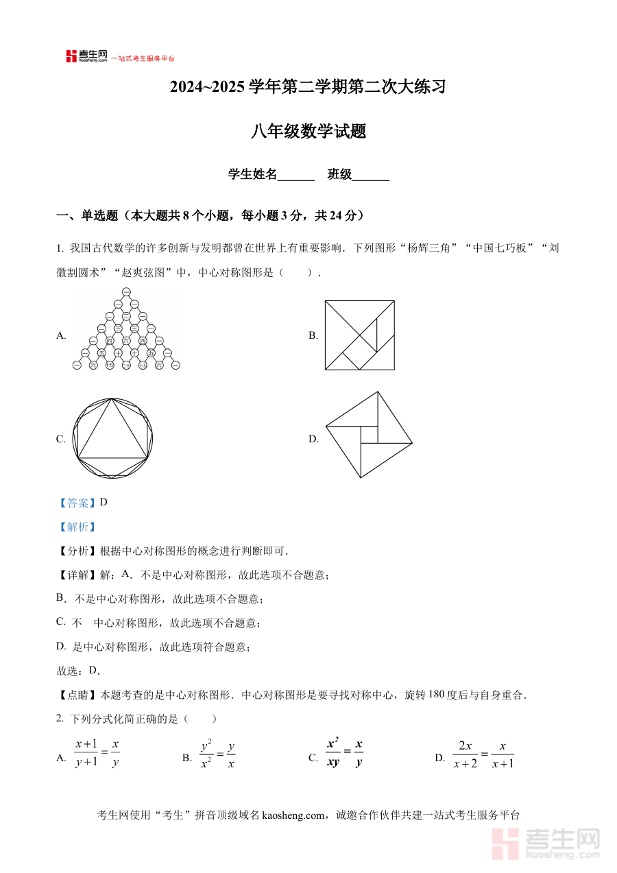 该资料主要适用于西安市莲湖区远东第二中学2024—2025学年八年级下学期学生,同时也可为该区域内同年级其他学生提供参考。对于学生而言,它是自我检测与查漏补缺的得力助手;对于教师而言,则是了解学生学习情况、优化教学策略的重要参考。其解析版形式更便于使用者深入理解每道试题的解题思路与方法,从而在后续学习中做到有的放矢,提升学习效率与应试能力。它的价值在于作为阶段检测的重要辅助工具,帮助使用者及时掌握自身学习进度与水平,为后续备考规划提供数据支持与方向指引。
