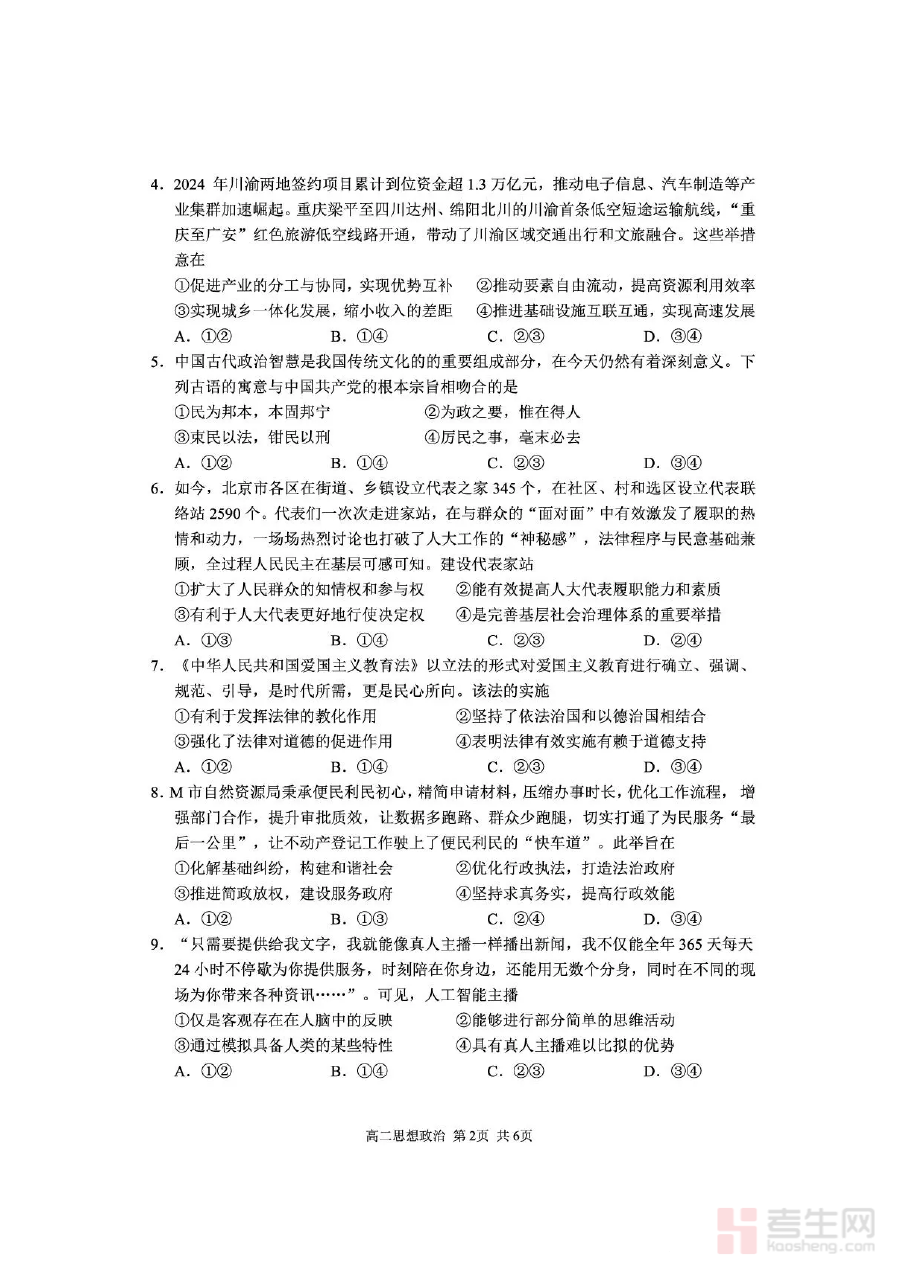 《攀枝花市2025-2026学年度高二(上)教学质量监测样卷政治》是攀枝花市针对2025至2026学年高二上学期学生推出的政治学科教学质量监测类样卷,属于区域内阶段性教学评估的重要备考资料,旨在为当地高中政治教学活动及学生学习提供科学的参考依据。