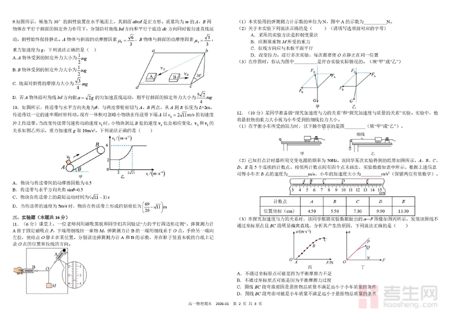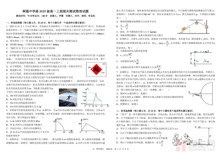 《四川省成都市树德中学2025-2026学年高一上学期期末考试 物理 PDF版含答案(可编辑) 高一物理期末》是针对四川省成都市树德中学2025-2026学年高一学生设计的物理学科期末备考资料,精准匹配该校高一上学期期末考试的考查范围与要求,为学生提供贴合校考实际的复习方向与练习载体。