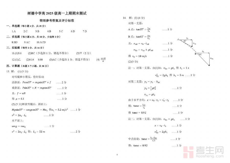 《四川省成都市树德中学2025-2026学年高一上学期期末考试 物理 PDF版含答案(可编辑) 高一物理答案》是针对四川省成都市树德中学2025-2026学年高一上学期物理期末考试设计的配套备考资料,包含该考试的完整试题及对应答案,且采用可编辑的PDF格式,便于使用者根据实际需求进行修改、标注或整合内容,为期末备考过程提供灵活且实用的支持。