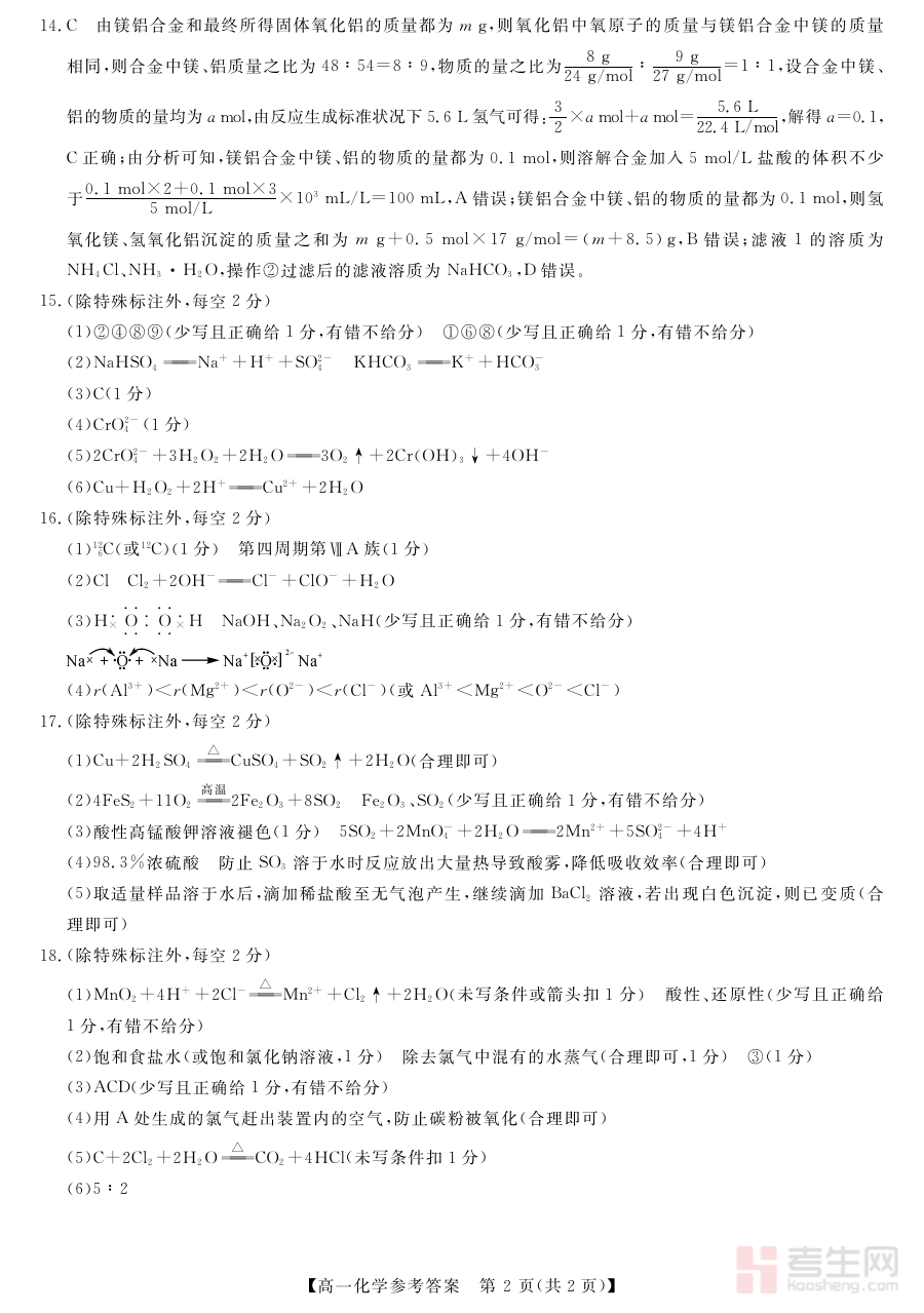 《钦州2025-2026秋季期末高一化学答案》是针对钦州地区2025至2026学年秋季学期高一化学期末考试的配套答案资料。它与该区域特定学期的高一化学期末检测直接对应,为使用者提供了该考试相关的标准化答案参考,是辅助完成该阶段化学学习评价的重要资源。