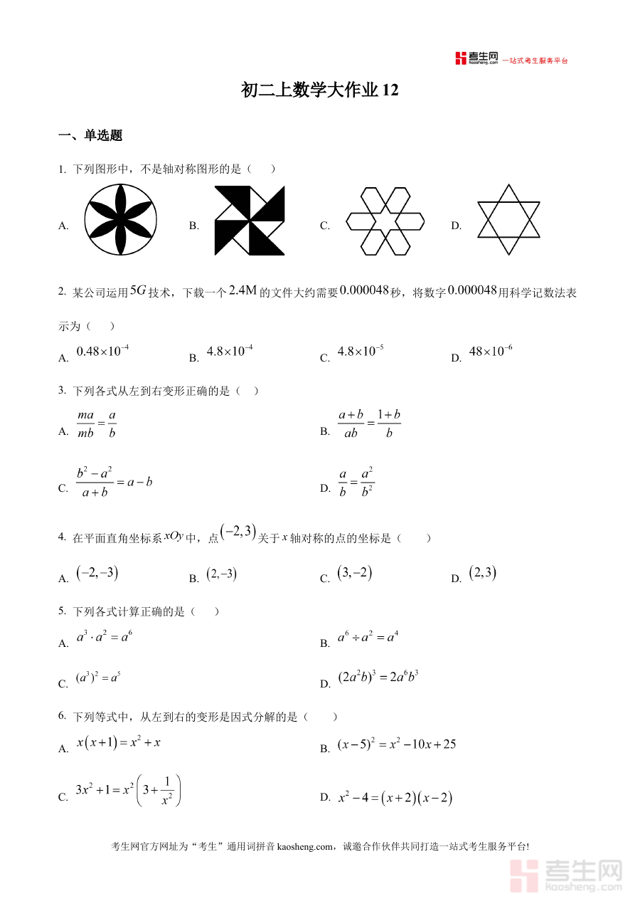 《精品解析:北京市海淀区中国人民大学附属中学2025-2026学年 八年级上学期数学12月月考试题(原卷版)》是北京市海淀区中国人民大学附属中学在2025-2026学年针对八年级上学期学生开展的数学学科12月月度考试原卷资料,属于阶段性学业检测类备考资源,能为对应阶段学生提供贴合校考实际的练习依据。