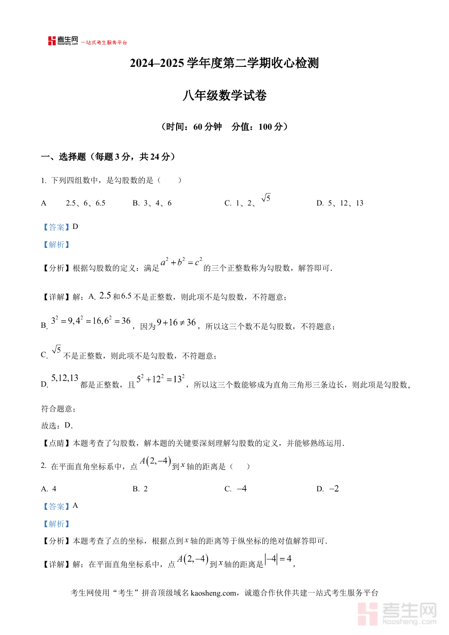 《精品解析:陕西省西安市西安经开第一学校(西安经发学校)2024-2025学年八年级下学期开学考试数学试题(解析版)》是面向陕西省西安市西安经开第一学校(西安经发学校)2024-2025学年八年级学生打造的开学考试数学备考资料。该资料整合了本次开学考试的数学试题及对应的详细解析内容,为使用者提供与考试直接关联的系统性参考资源,助力使用者精准把握考试方向与核心要求,为即将到来的开学考试做好充分准备。