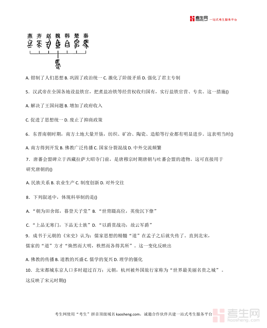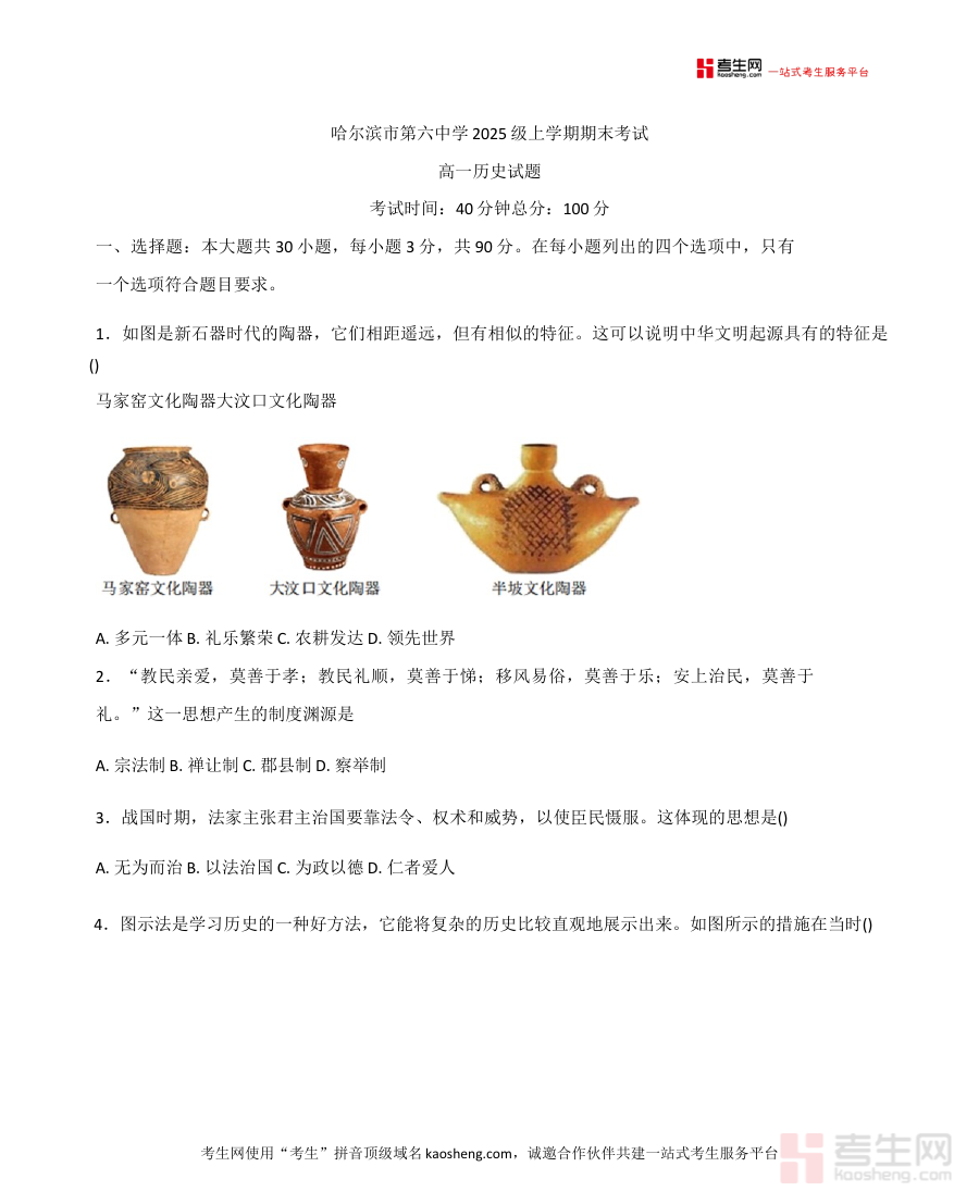 本资料主要适用于黑龙江省哈尔滨市第六中学校2025-2026学年的高一学生,借助试题及答案,学生可熟悉期末历史考试的考查模式,增强应对阶段考试的信心,对巩固上学期历史知识体系、提升备考效率具有重要价值。