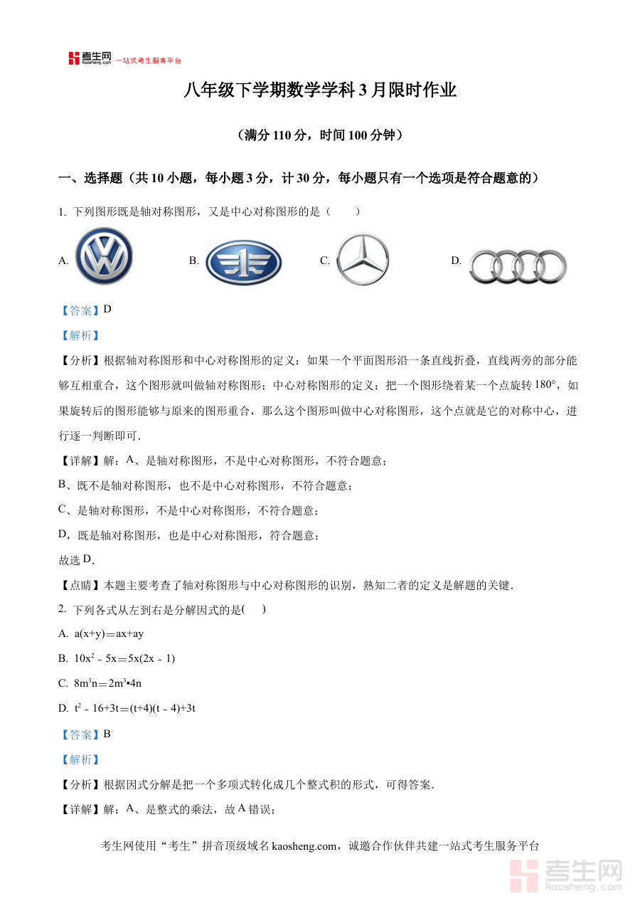这份资料的核心用途在于支持学情诊断与备考规划。对于使用者而言,它能够帮助快速定位数学学习中的薄弱环节,明确阶段性学习的优势与不足;同时,通过对该次月考内容的解析,可以把握该学校在八年级下学期初期数学教学的重点方向与考查维度,为后续的学习安排或教学调整提供数据与内容支撑,助力形成更具针对性的学习或教学策略,避免盲目复习或教学偏差。
