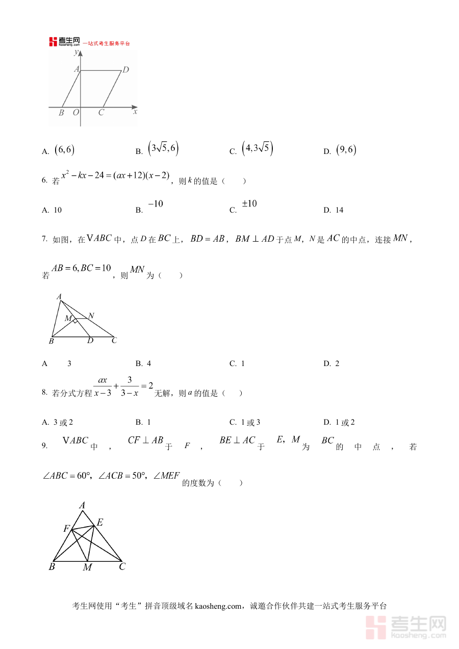 《精品解析:陕西省西安市高新三中学2024-2025学年下学期八年级5月月考数学试卷 (原卷版)》是针对陕西省西安市高新三中学2024-2025学年下学期八年级学生设计的数学学科月考备考资料。该资料对应学校特定学年阶段的教学进度,聚焦5月份的月考场景,能够精准贴合该校八年级数学教学的阶段性要求,为使用者提供与实际考试高度匹配的备考素材,帮助使用者提前熟悉本次月考的整体框架与考查方向,是该阶段数学学习与备考的重要参考资料。
