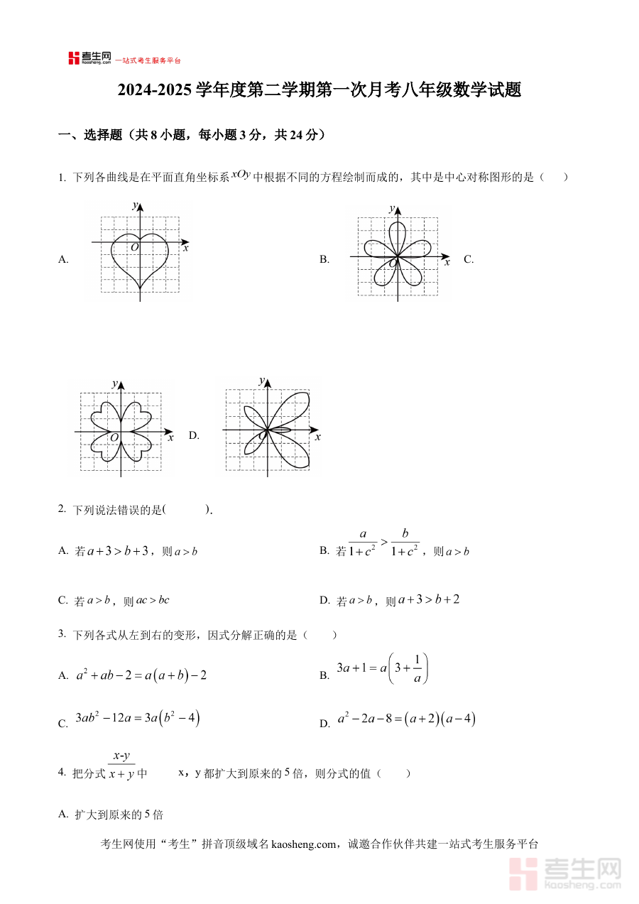 该资料的适用人群主要包括西安市高新二中八年级在读学生、需要参考该学校月考模式的同年级学生以及数学学科教师。对于学生而言,它是巩固阶段性知识、提升应试能力的有效资源;对于教师来说,它可作为教学评估与计划优化的参考材料。整体而言,这份原卷版试题在帮助使用者明确学习目标、调整备考策略方面具有显著价值,能够助力使用者在数学学科的阶段性学习中取得更好的成果。