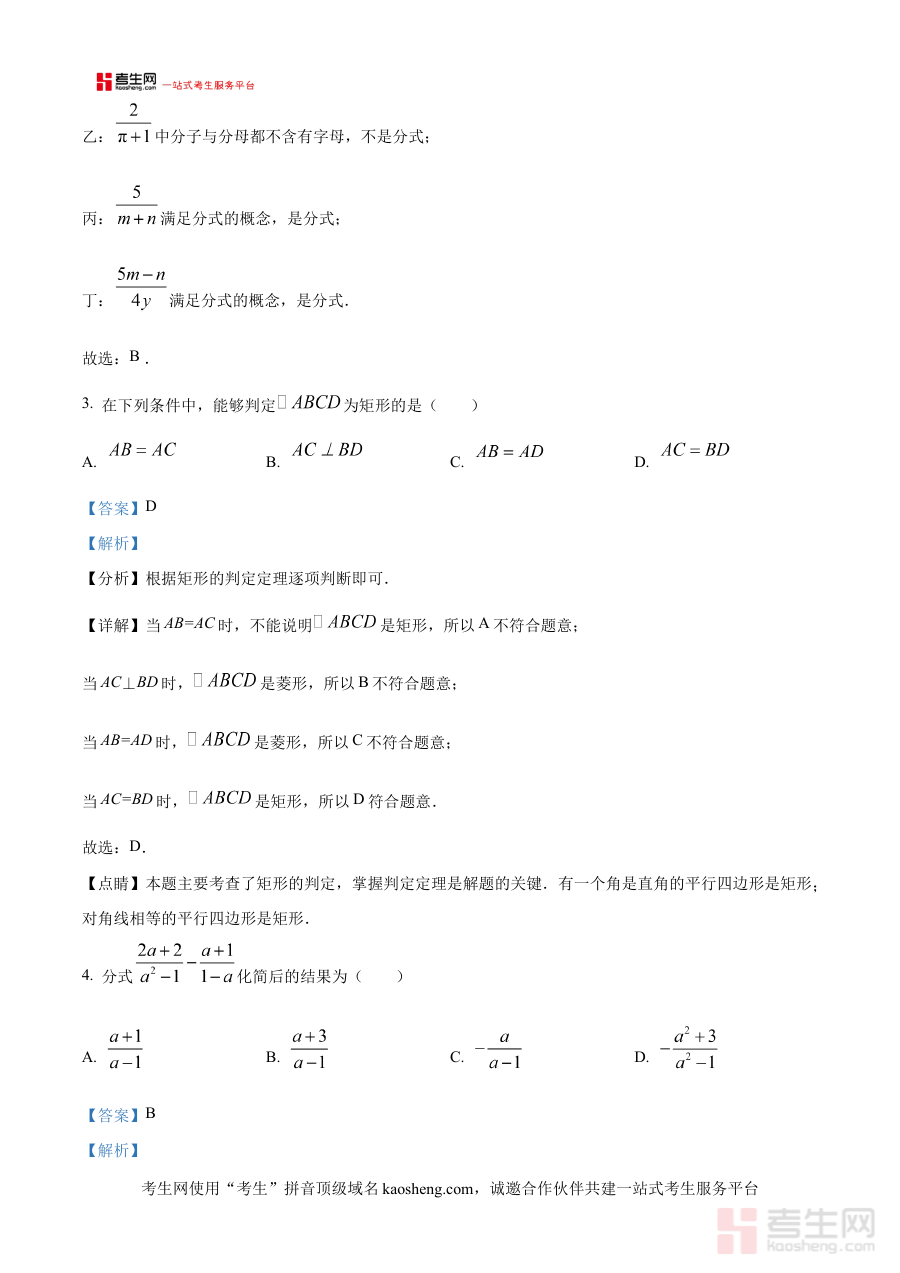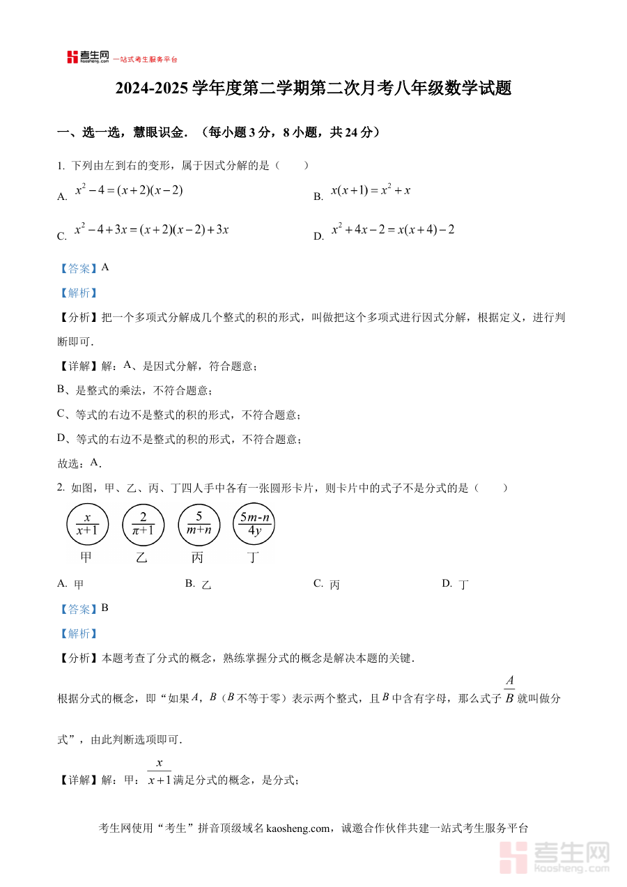 《精品解析:陕西省西安市高新第二初级中学2024-2025学年下学期第二次月八年级数学试题(解析版)》是针对陕西省西安市高新第二初级中学2024-2025学年下学期八年级第二次月考数学科目的专业备考资料,结合该校该阶段数学教学进度与月考命题特点整理而成,为师生提供贴合校考实际的参考内容,助力使用者快速对接本次考试的核心要求与考查方向。